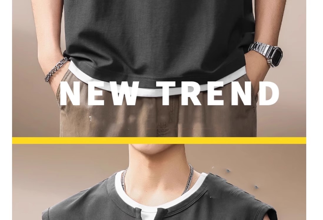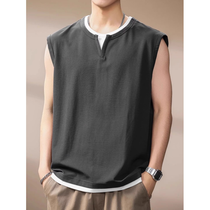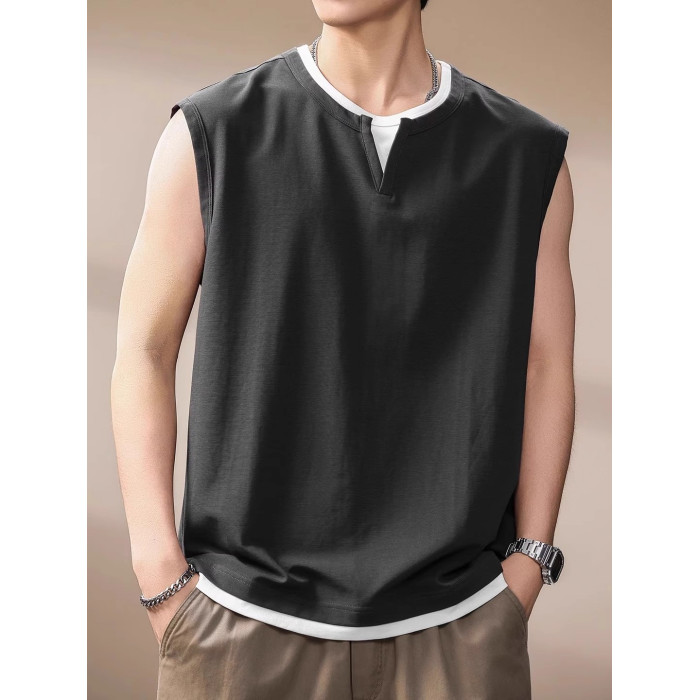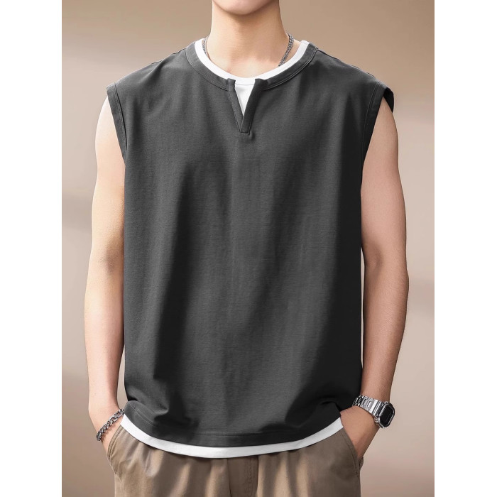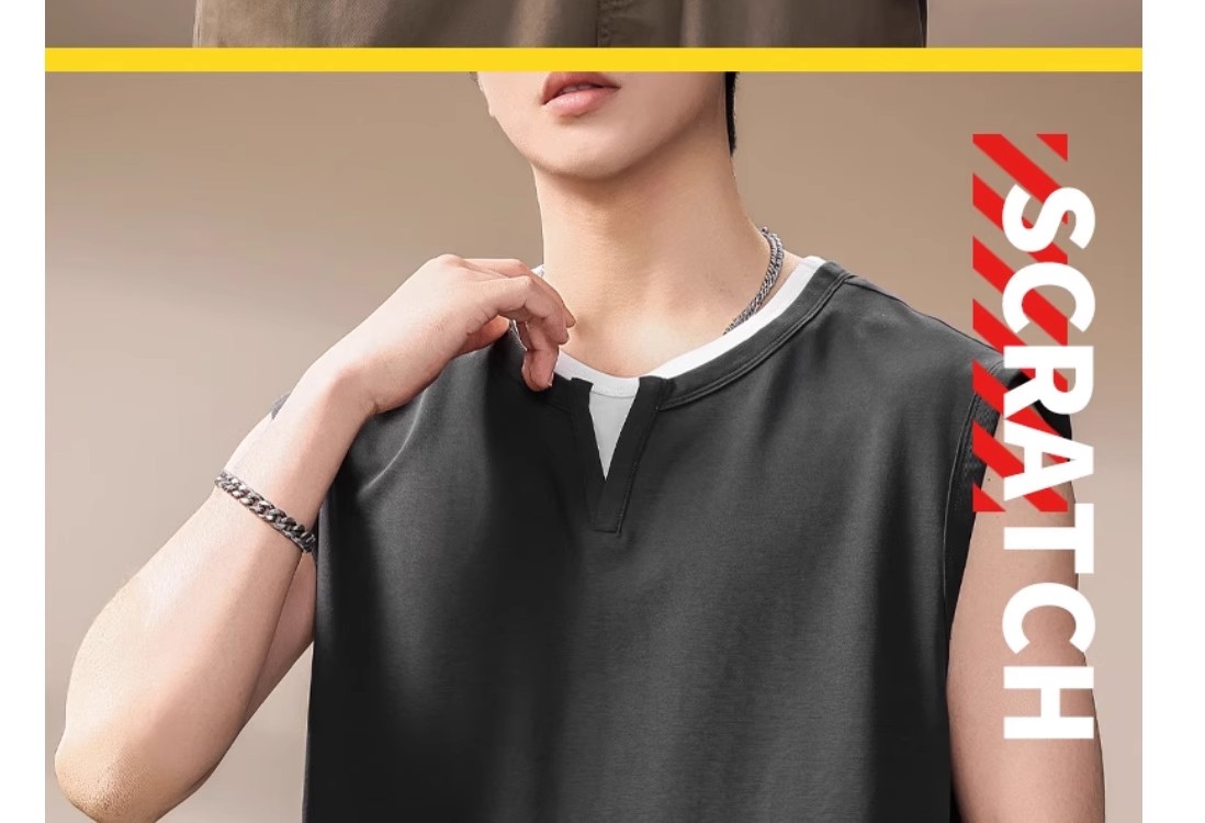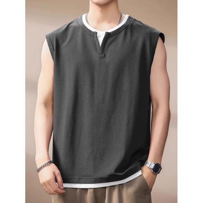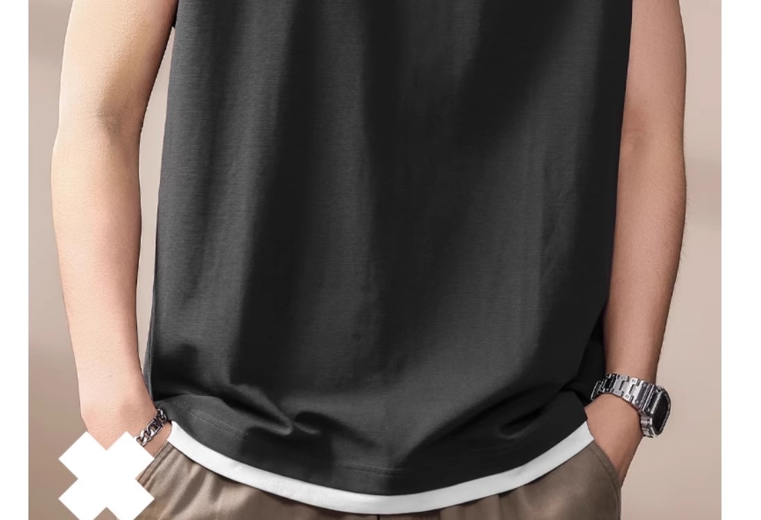 倉石一樹假兩件背心男夏季新款潮牌寬松健身運動無袖T恤休閒上衣
