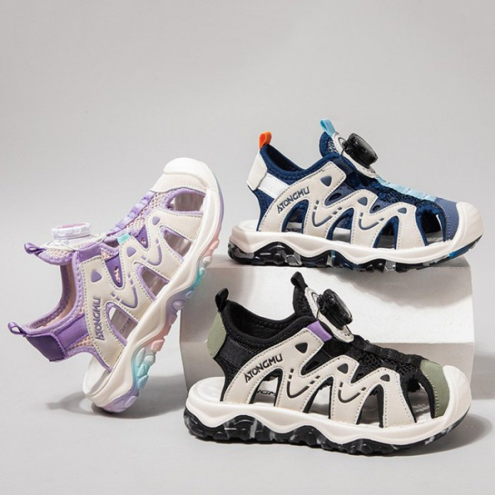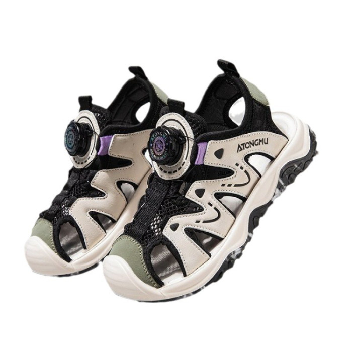 男童涼鞋2024新款夏季中大童軟底防滑包頭兒童運動沙灘鞋子