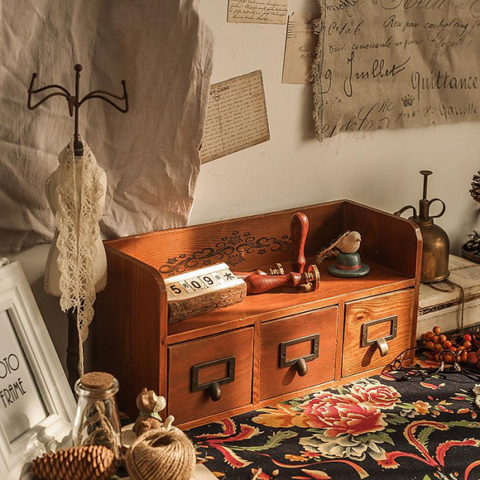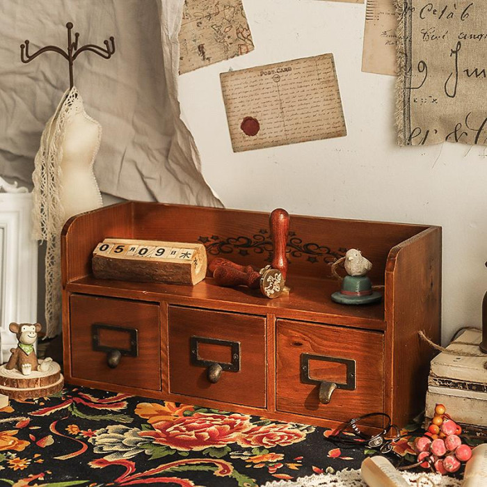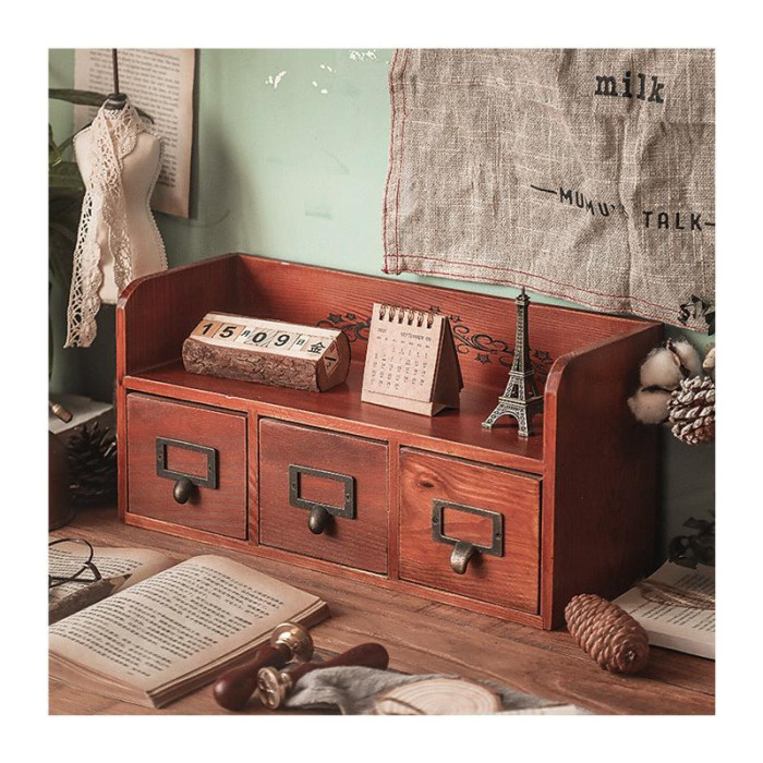 桌面收納盒抽屜式學生辦公室整理首飾襍物家用多功能木紋小置物架