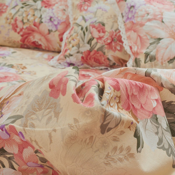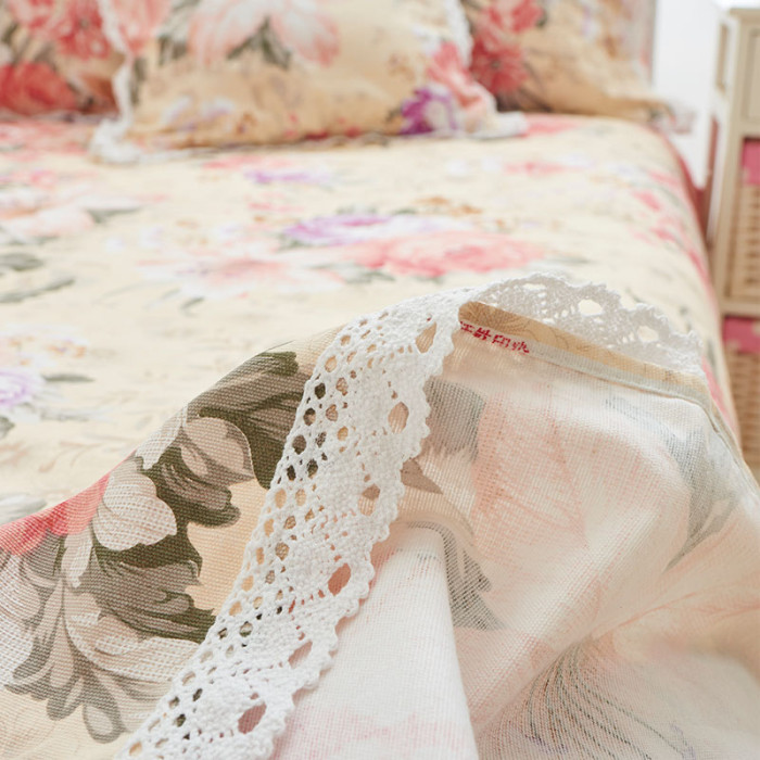 老粗布床單單件全棉純棉田園大花加厚加密花邊大炕單被單三件套