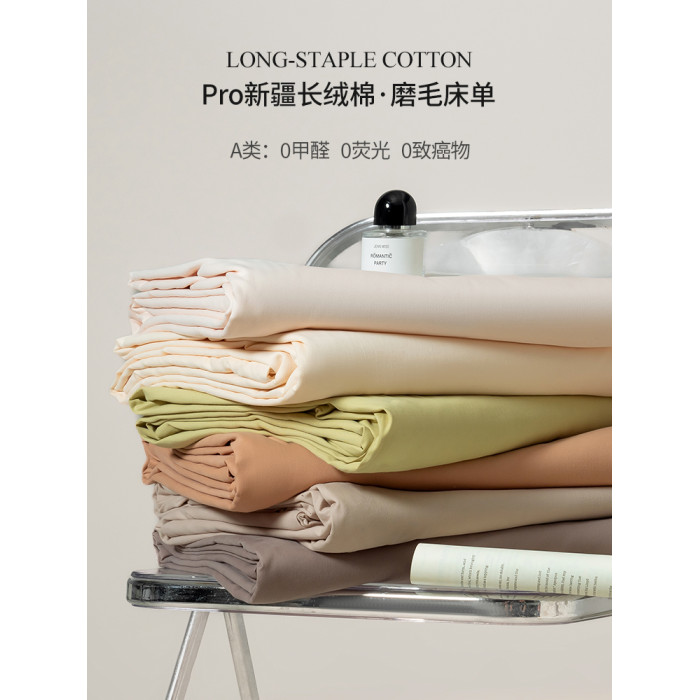 簡約A類100SPro長絨棉全棉磨毛床單單件純棉單雙人床罩床笠三件套