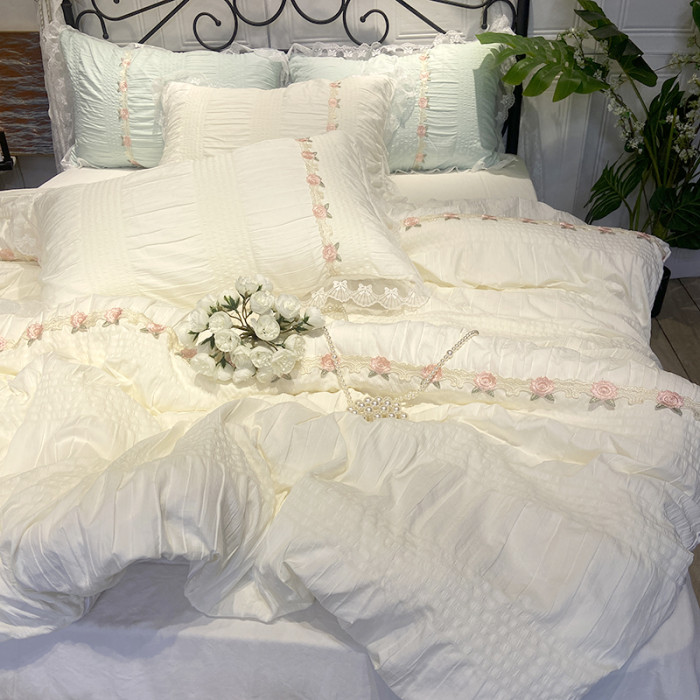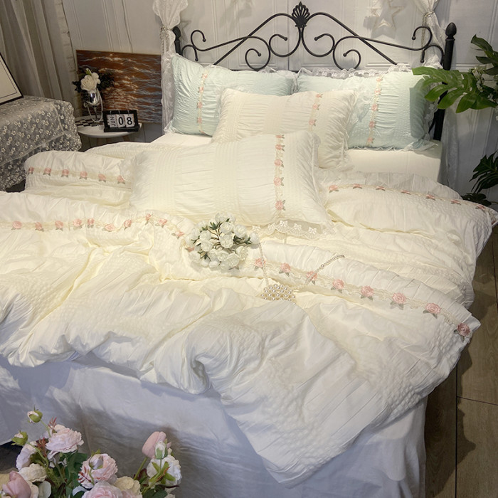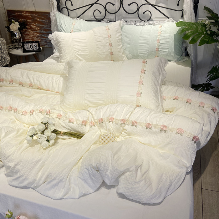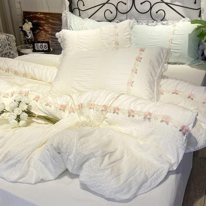 韓系少女心玫瑰小姐超柔水洗泡泡紗四件套公主風超柔床單宿舍床品