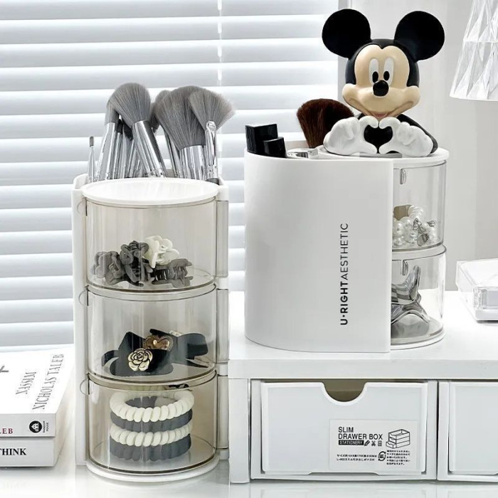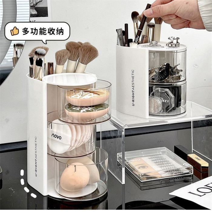 韓國HJ粉撲收納盒旋轉防塵桌面美妝蛋氣墊架梳妝台多層口紅化妝刷