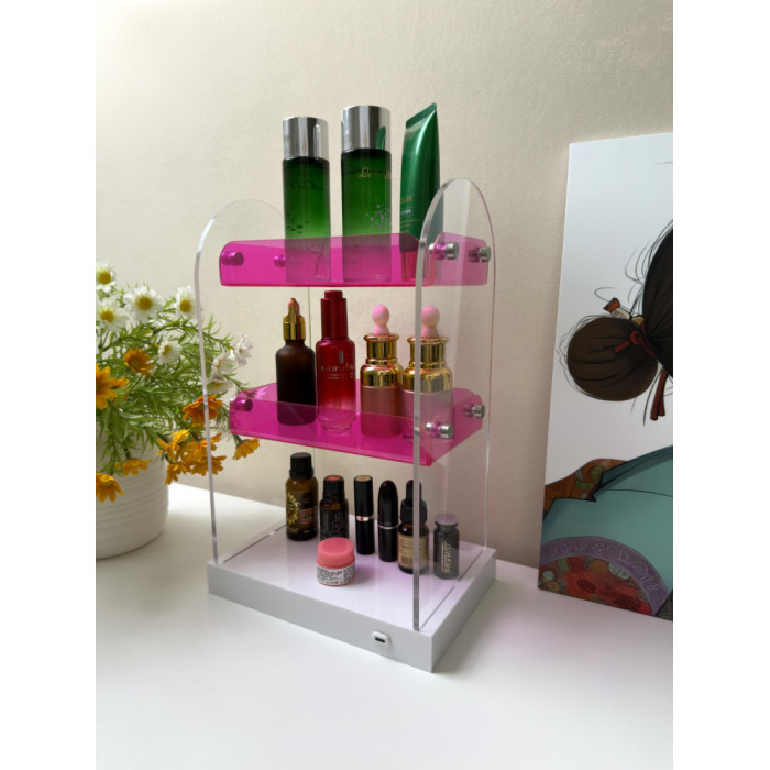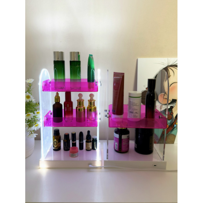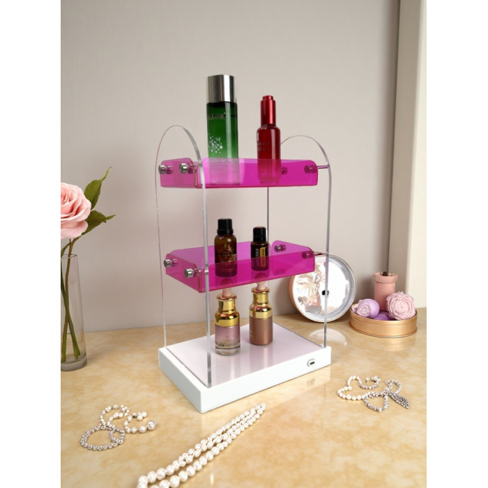 亞克力化妝品收納架桌面置物架梳妝台護膚品收納架帶燈展示架