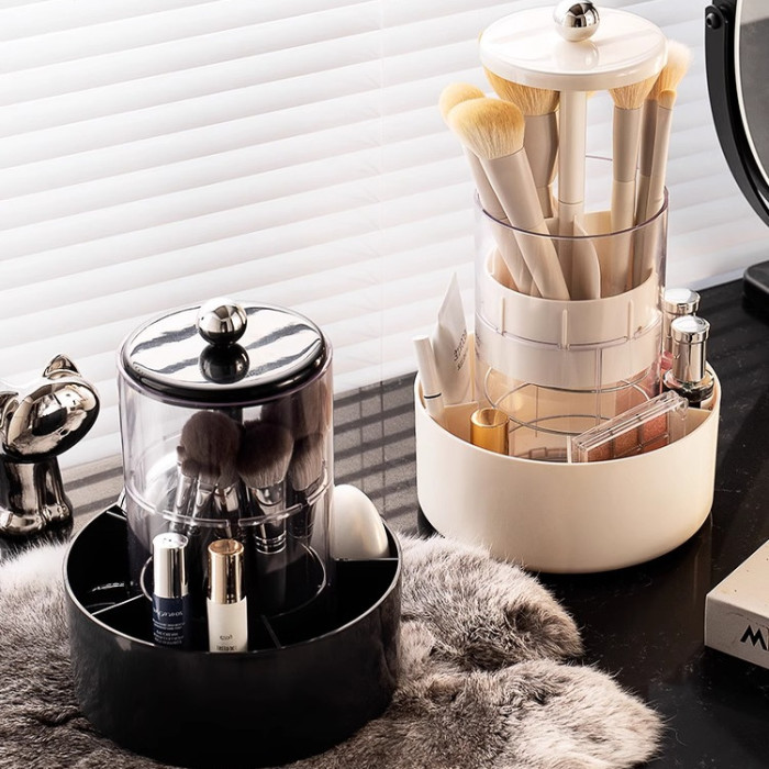 化妝刷收納筒旋轉防塵梳妝台桌面化妝品置物架口紅粉撲眉筆收納盒