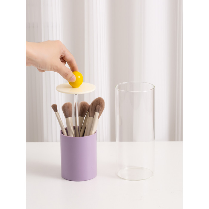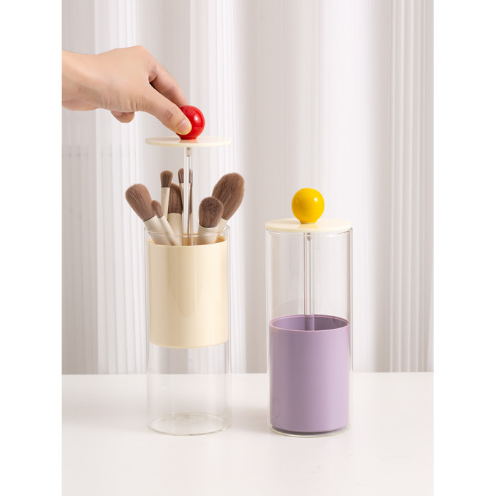 EpeiusHome升降化妝刷桌面收納盒梳妝台化妝品整理防塵透明多巴胺