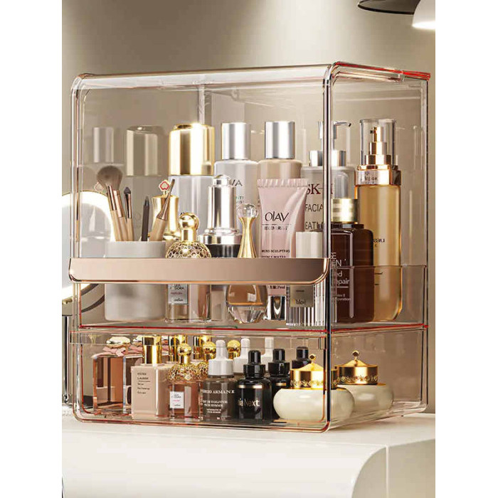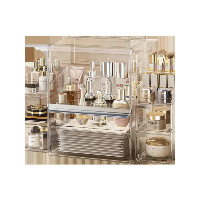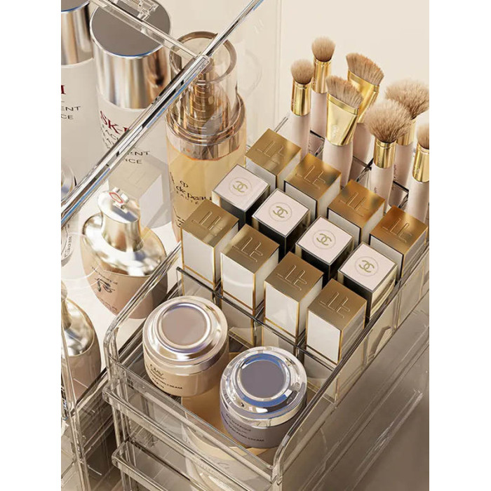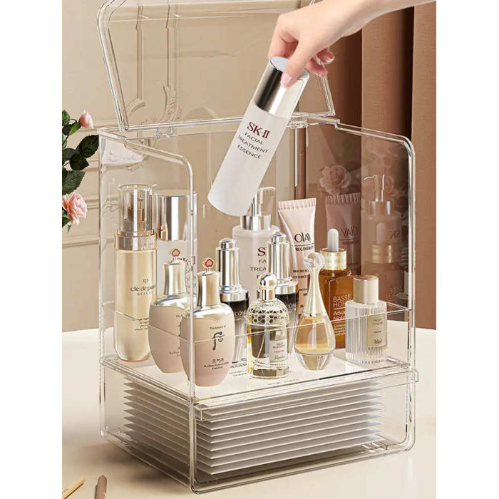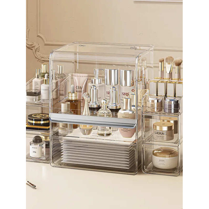 化妝品收納盒桌面防塵梳妝台護膚品口紅置物架透明亞克力整理箱櫃