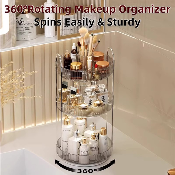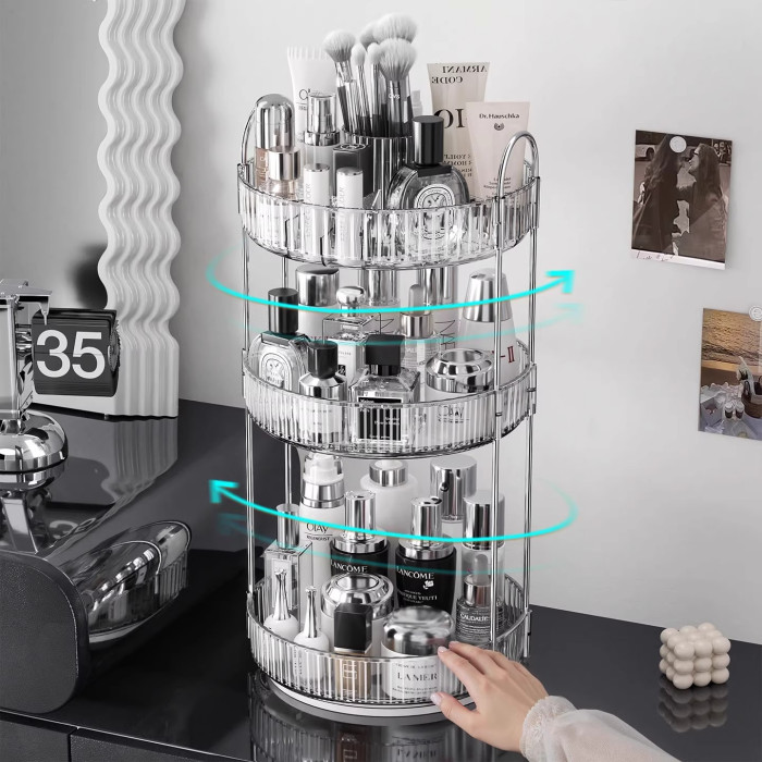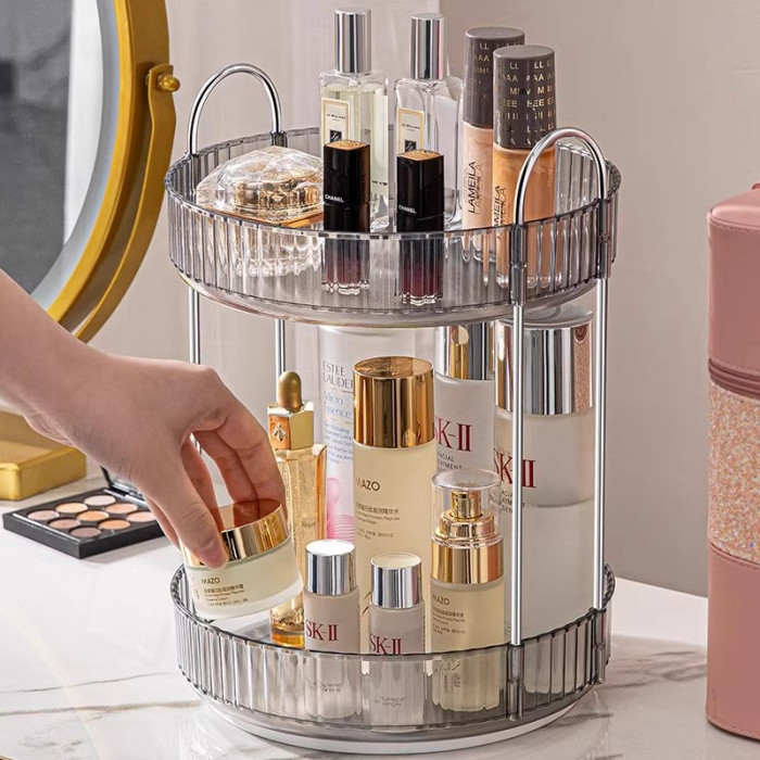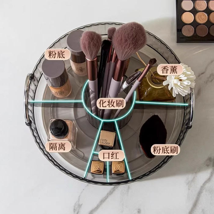 德國輕奢化妝品收納盒桌面旋轉網紅梳妝台口紅香水護膚品置物架