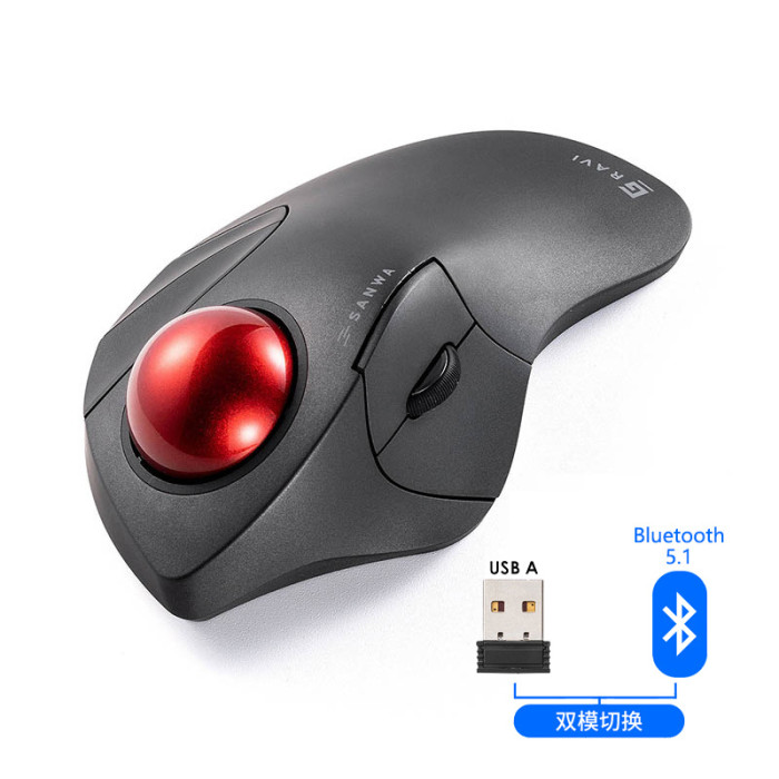 日本SANWA無線滑鼠人體工學軌跡球雙模靜音垂直繪圖CAD精準畫圖PS