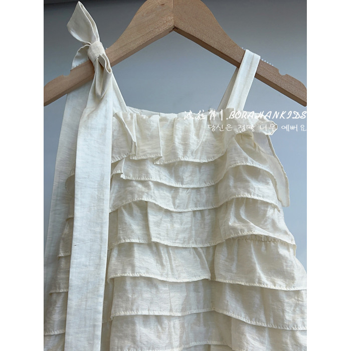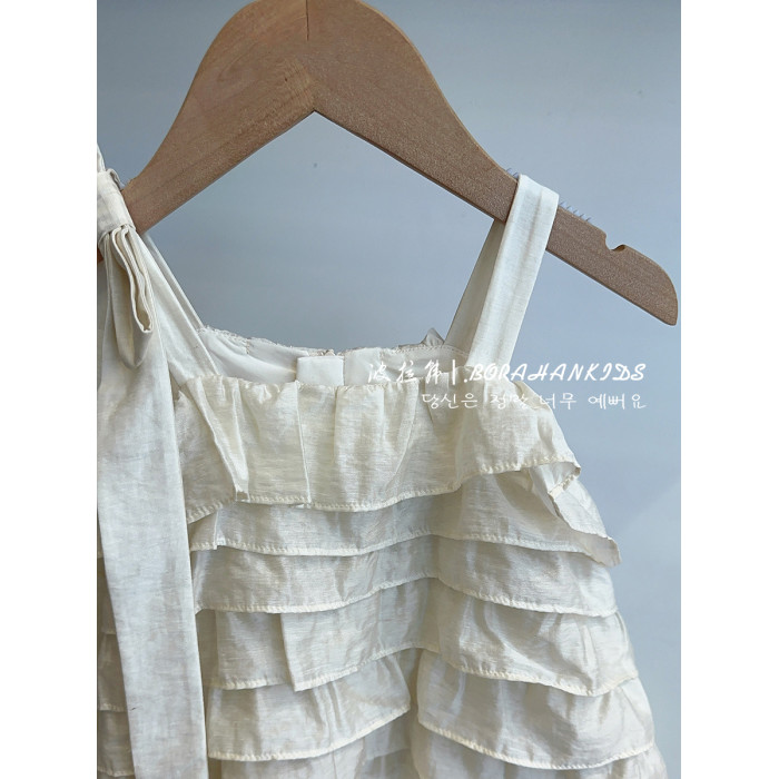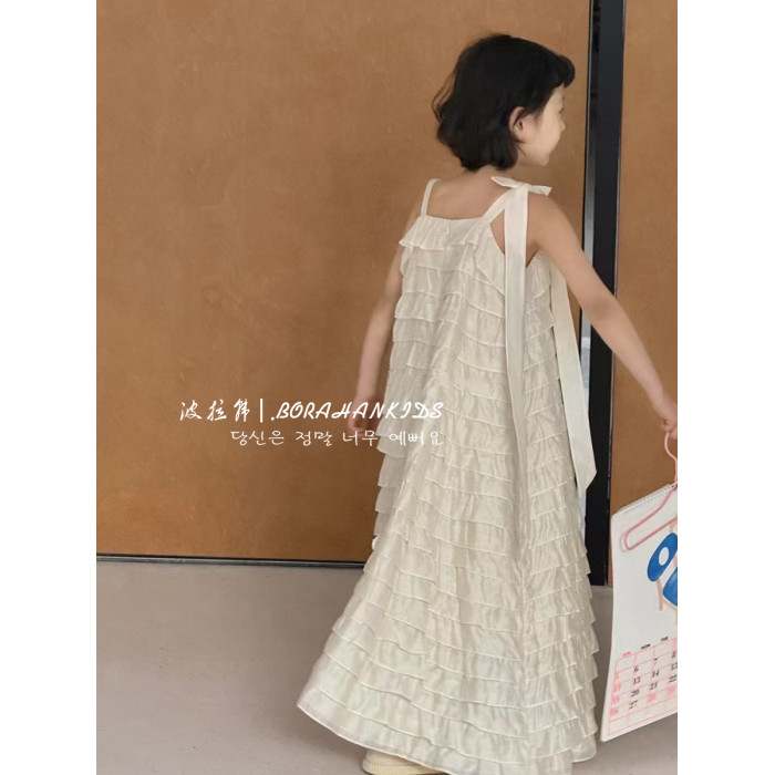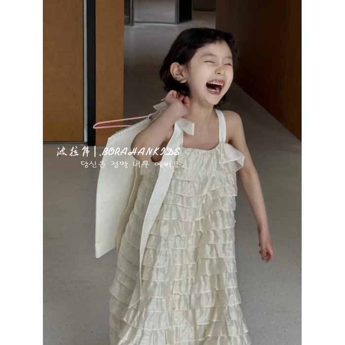 波拉韓女童蛋糕裙春夏新款2025小女孩吊帶連衣裙兒童公主裙長裙子