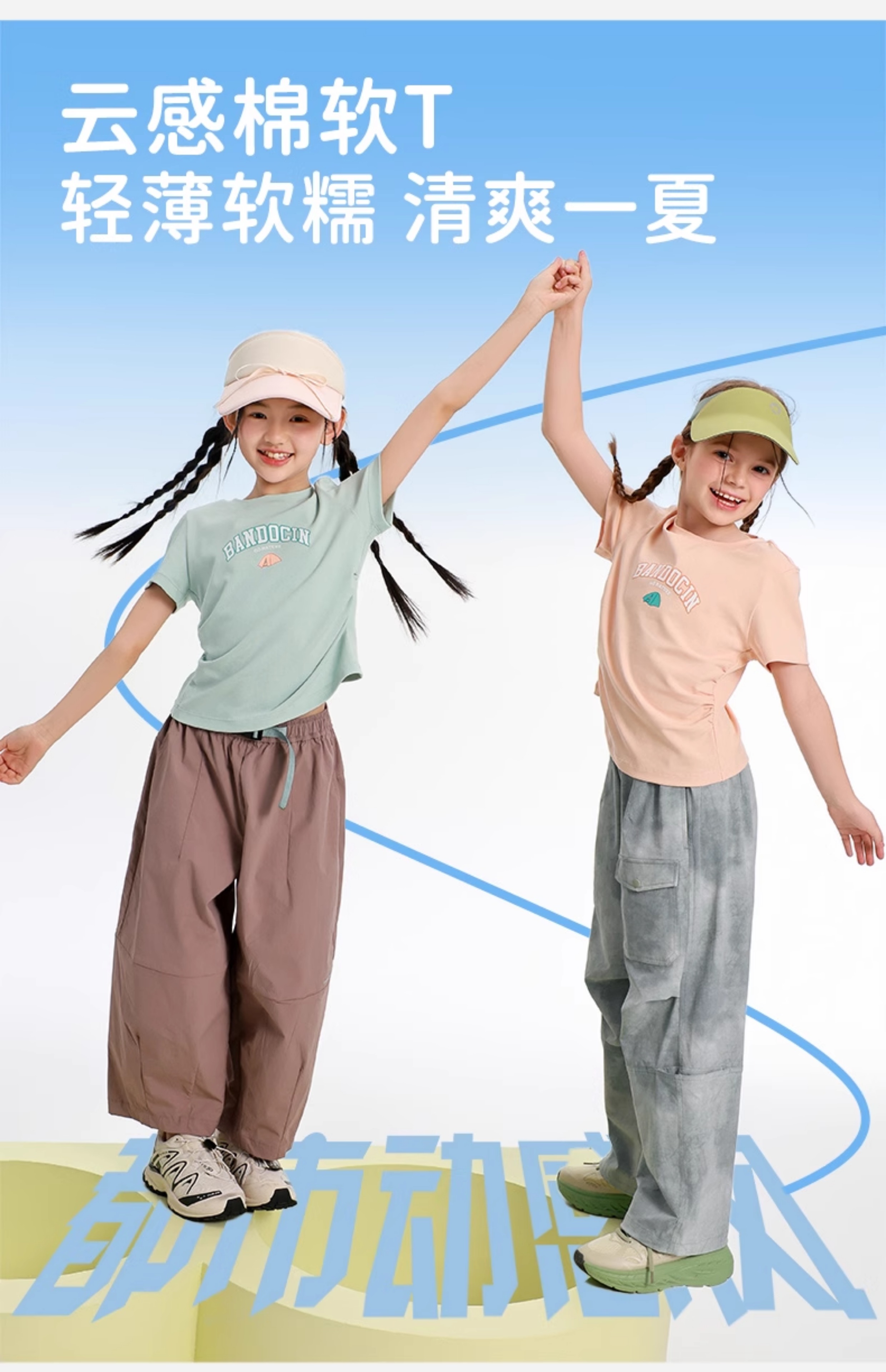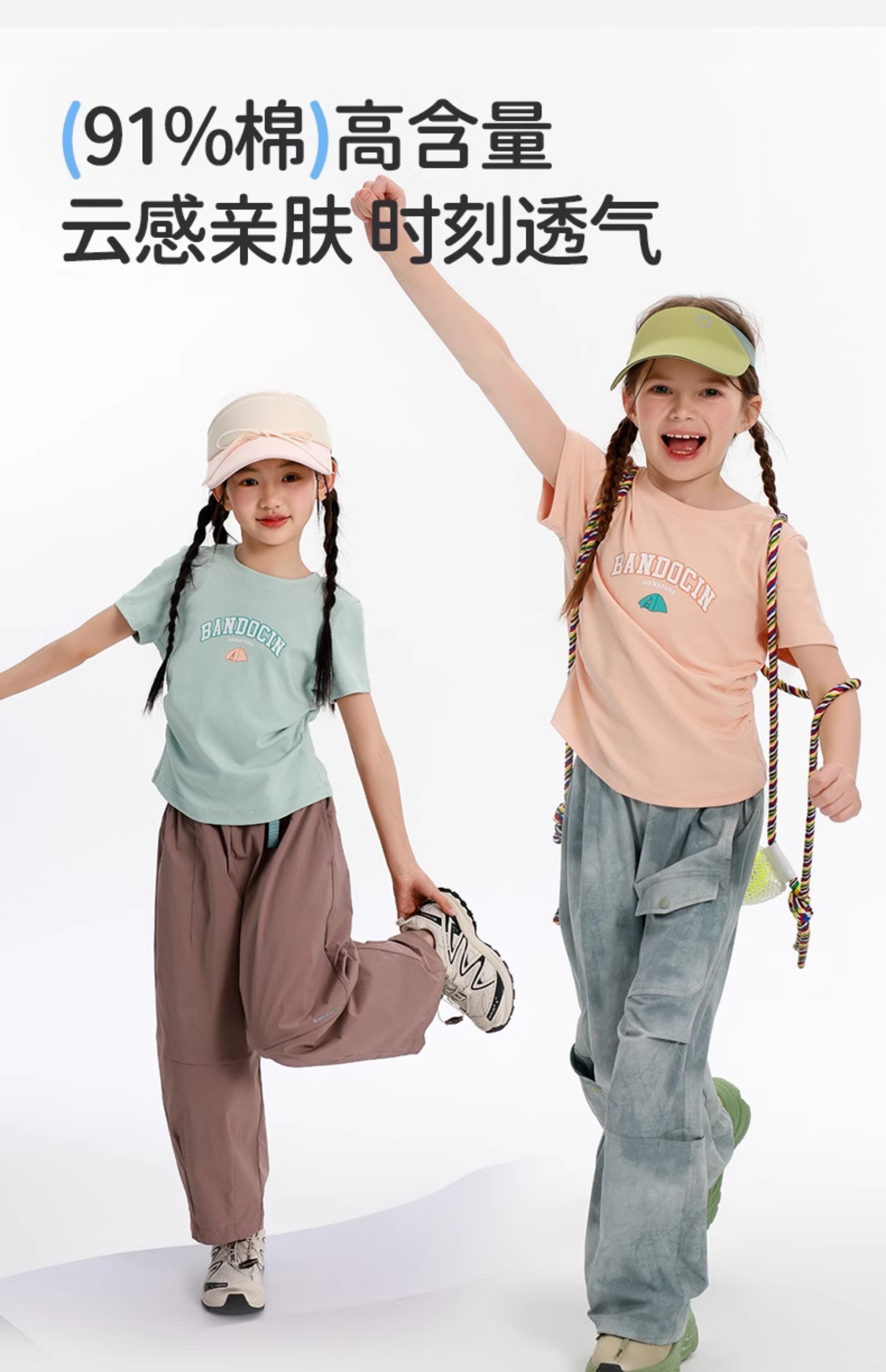 半度閒雲感棉女童夏裝短袖t恤洋氣薄款25新款兒童夏季輕薄上衣潮T