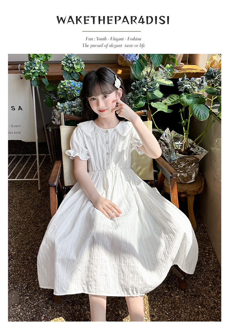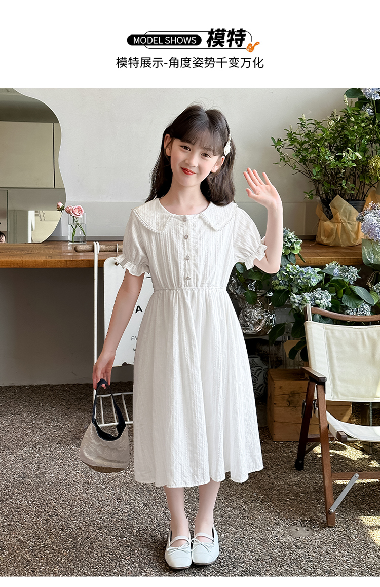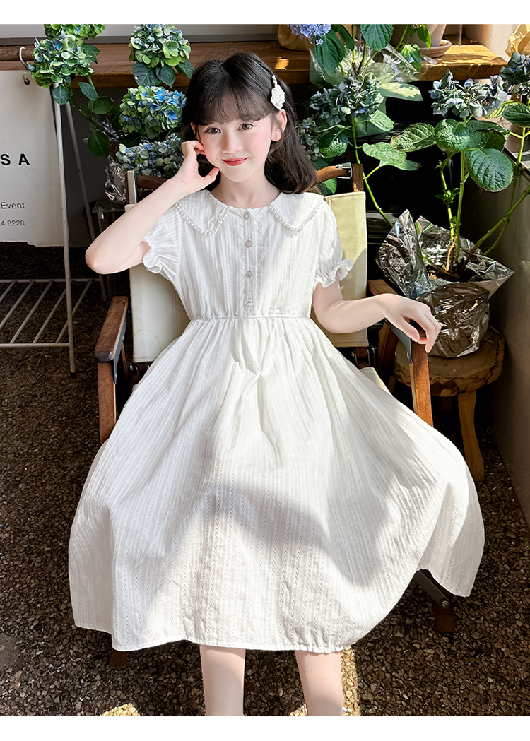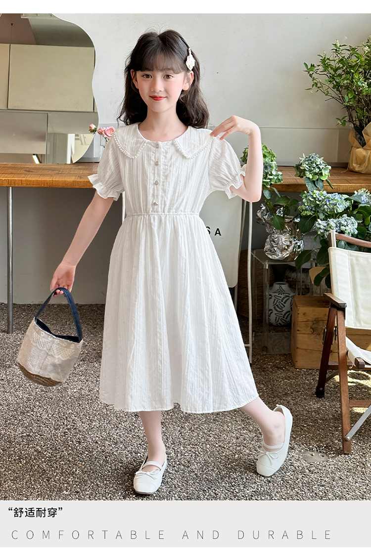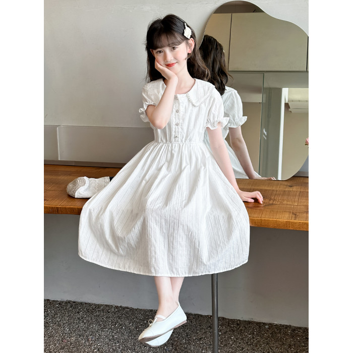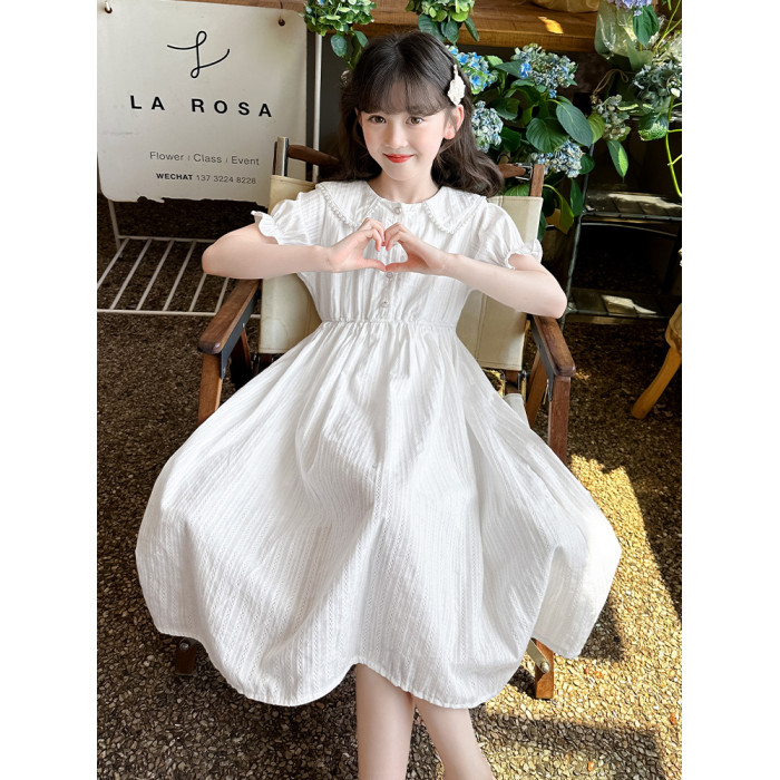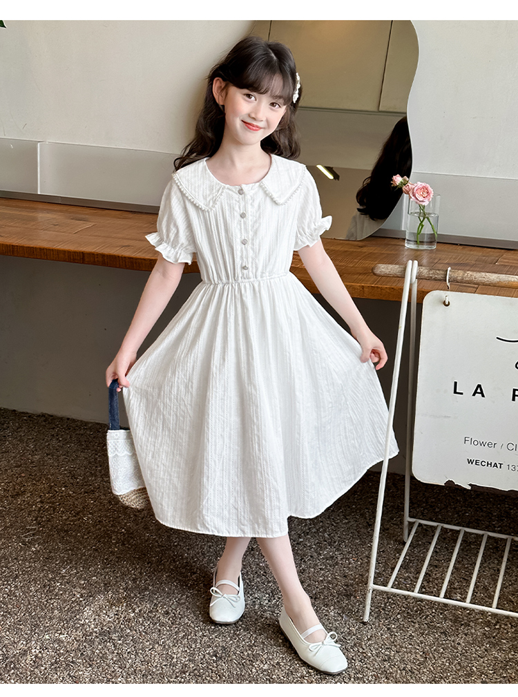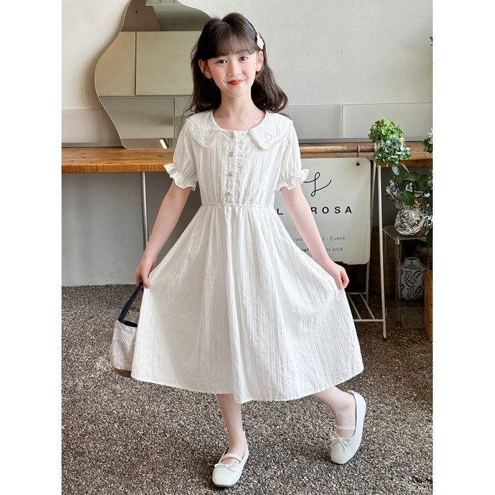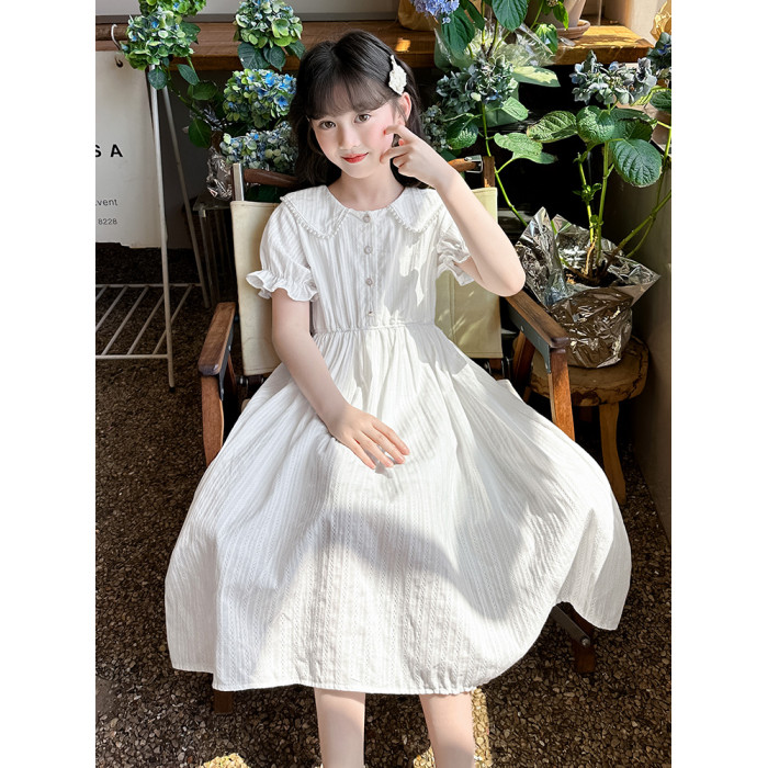 女童夏裝連衣裙大兒童夏季娃娃領長裙子過膝小女孩純棉白色公主裙
