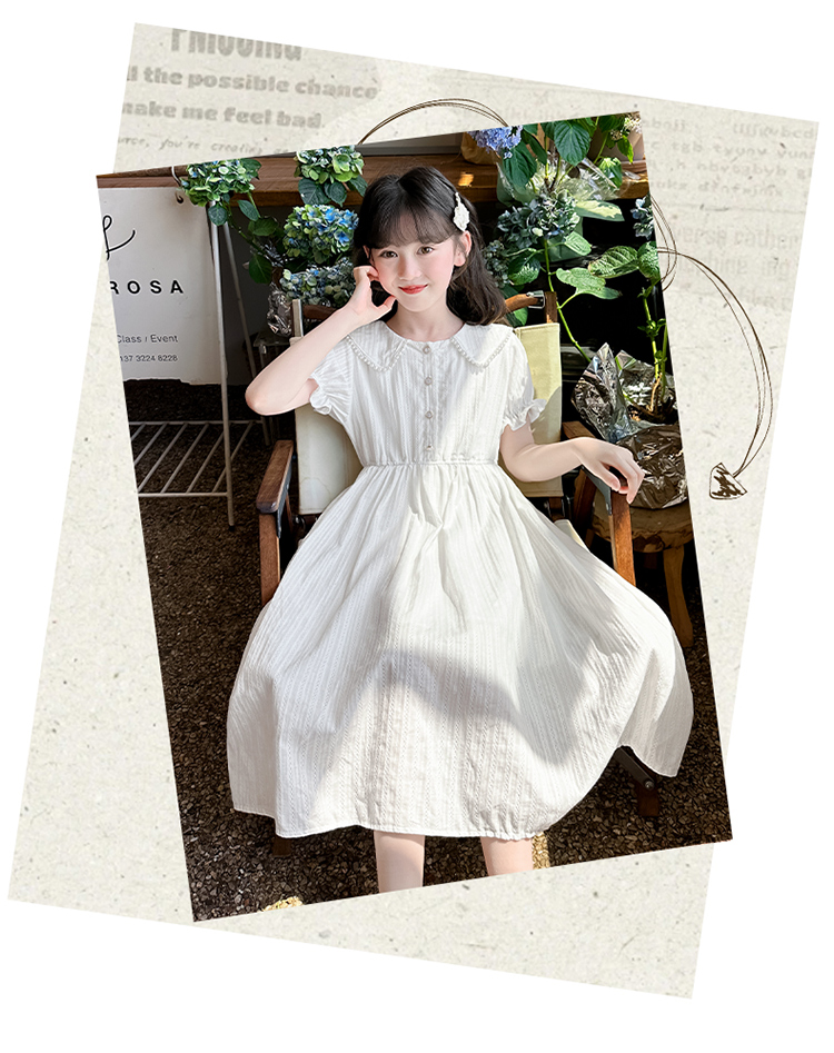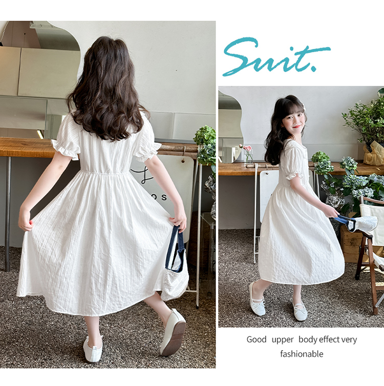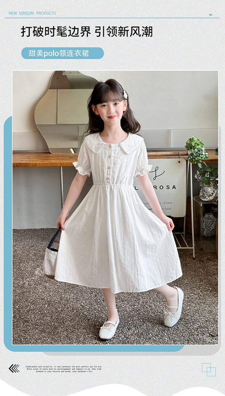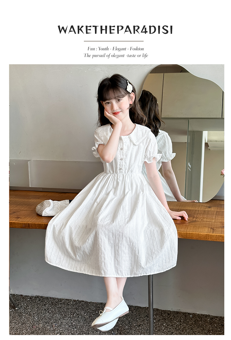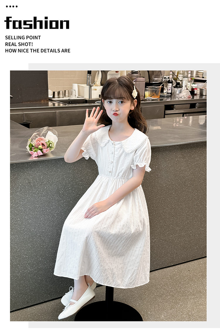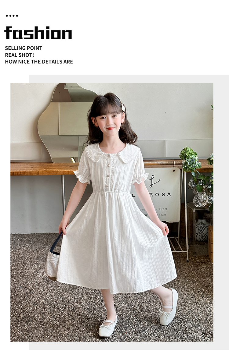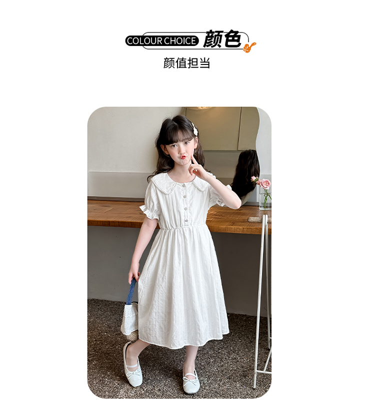 女童夏裝連衣裙大兒童夏季娃娃領長裙子過膝小女孩純棉白色公主裙