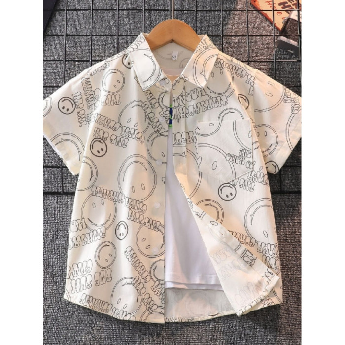 男童純棉短袖襯衫2025夏裝新款中大童男孩兒童襯衣夏裝衣服洋氣薄