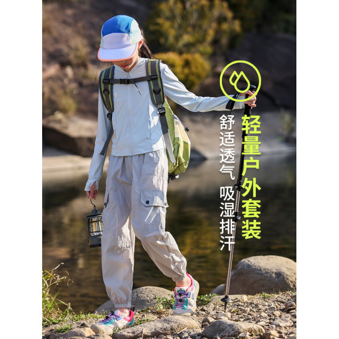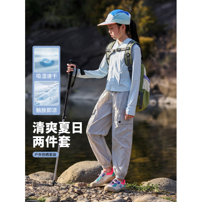 女童防曬衣套裝夏季薄款大童運動冰絲透氣防水戶外跑步訓練速乾褲