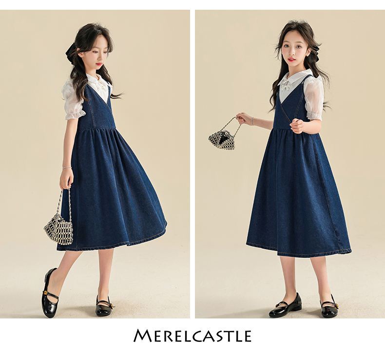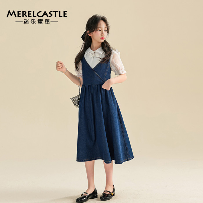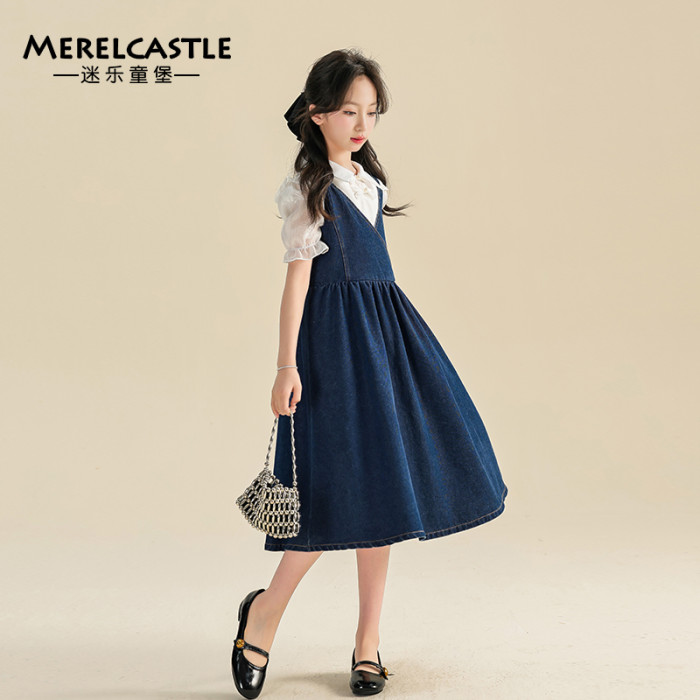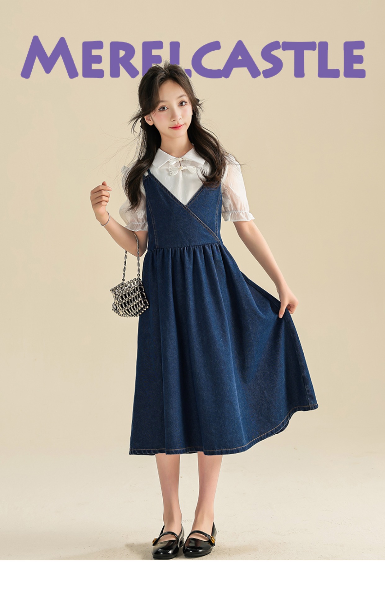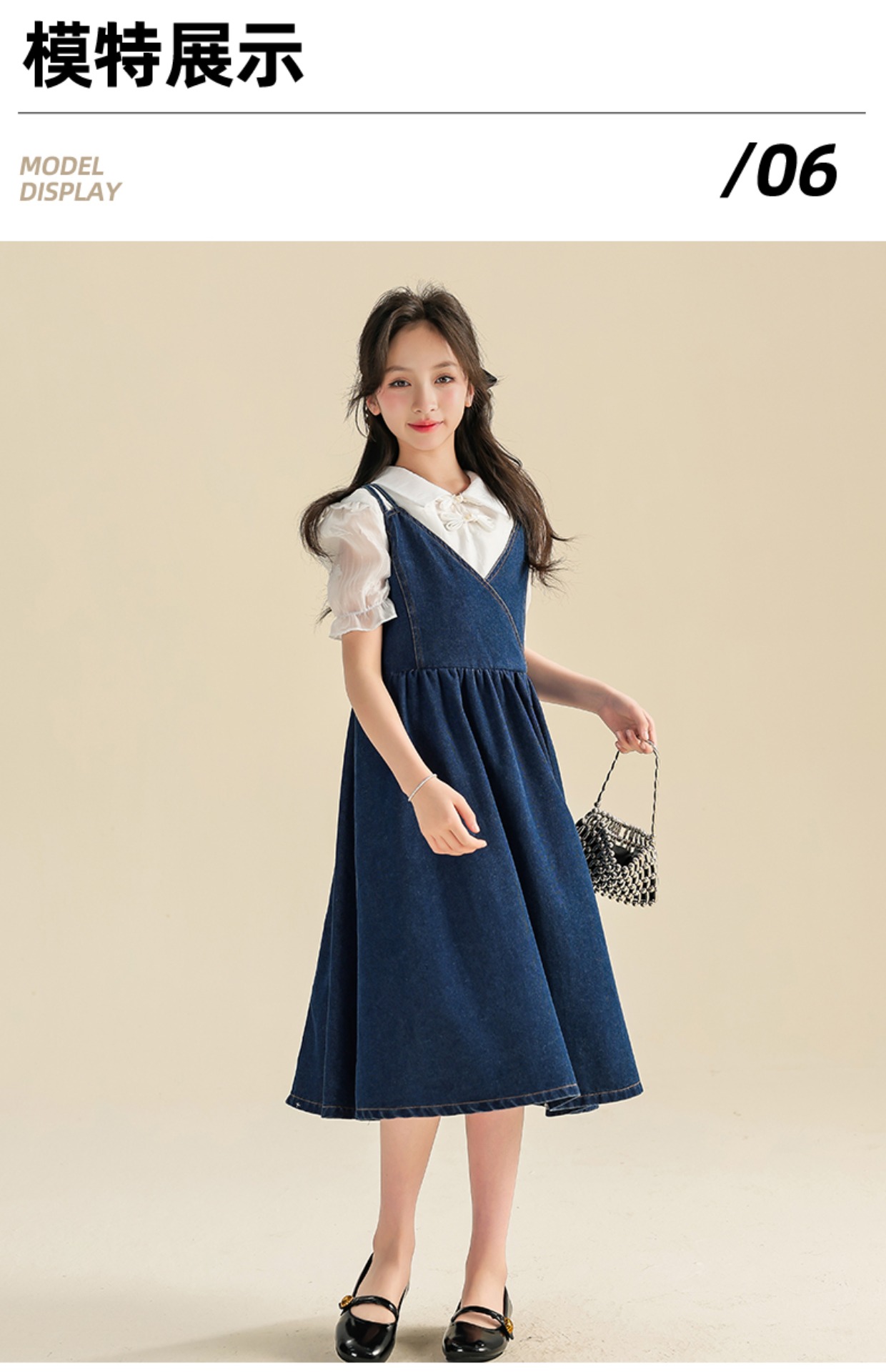 【CC家居控】2024夏季新款女童牛仔連衣裙女大童夏裝吊帶裙C3408