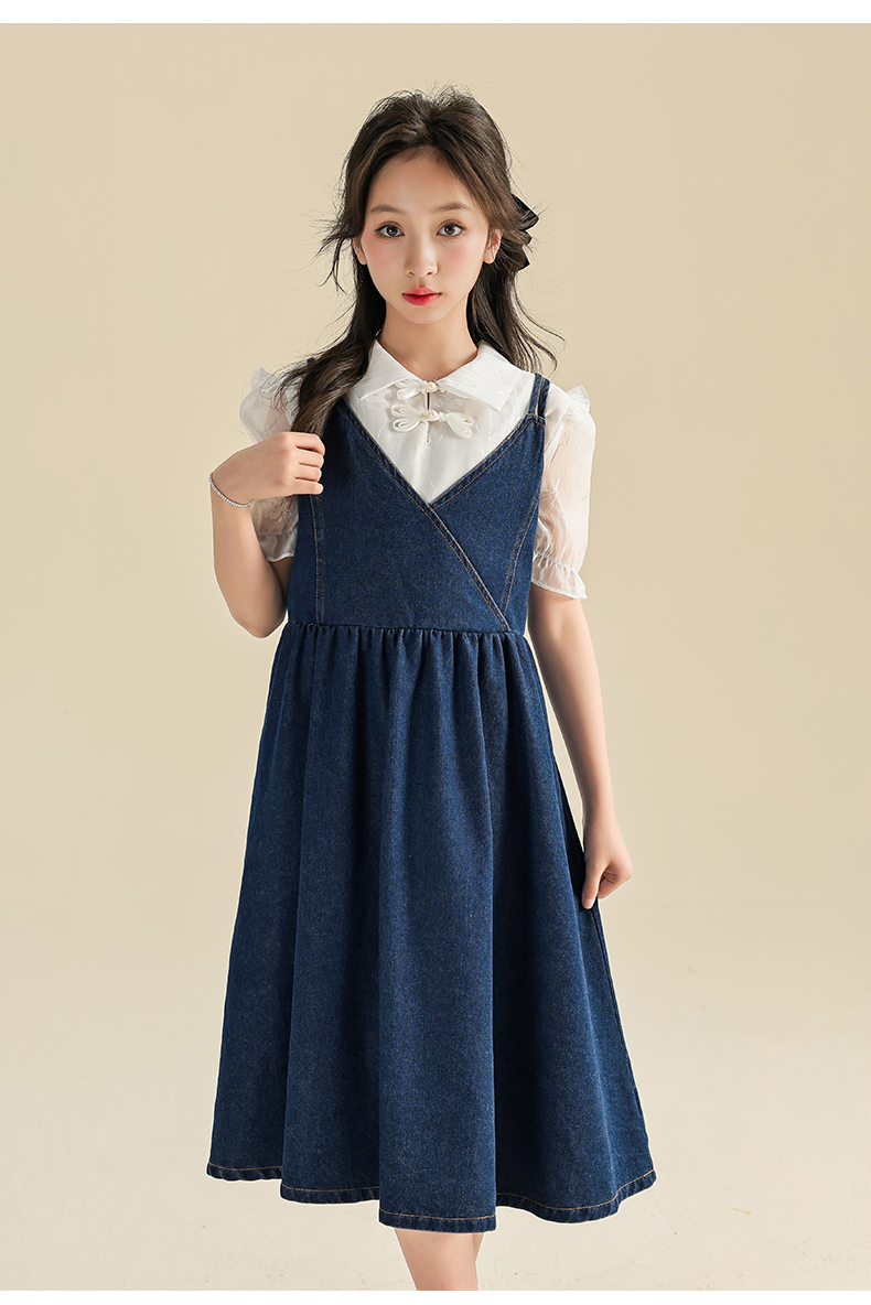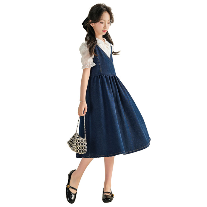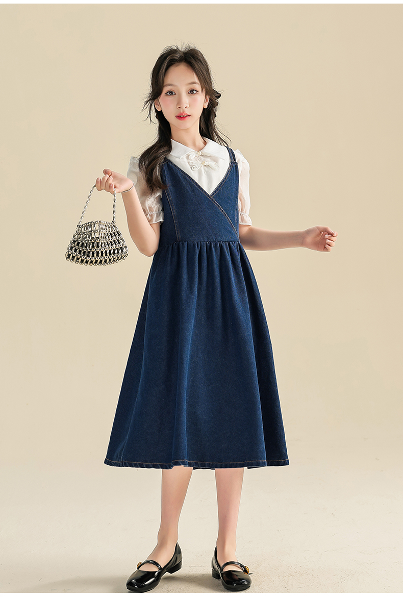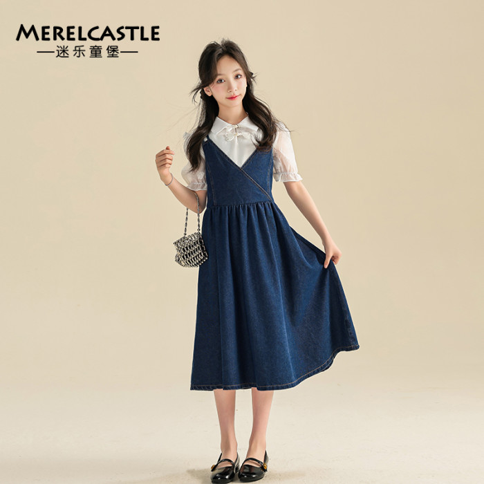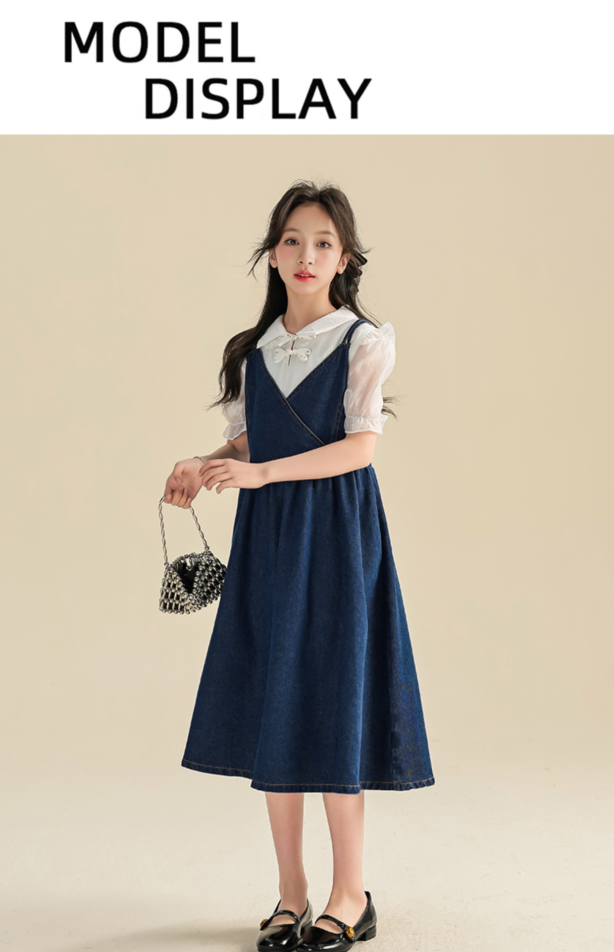 【CC家居控】2024夏季新款女童牛仔連衣裙女大童夏裝吊帶裙C3408