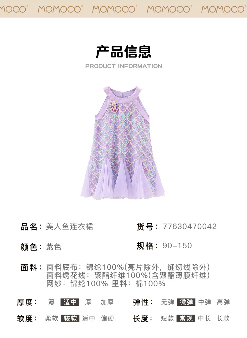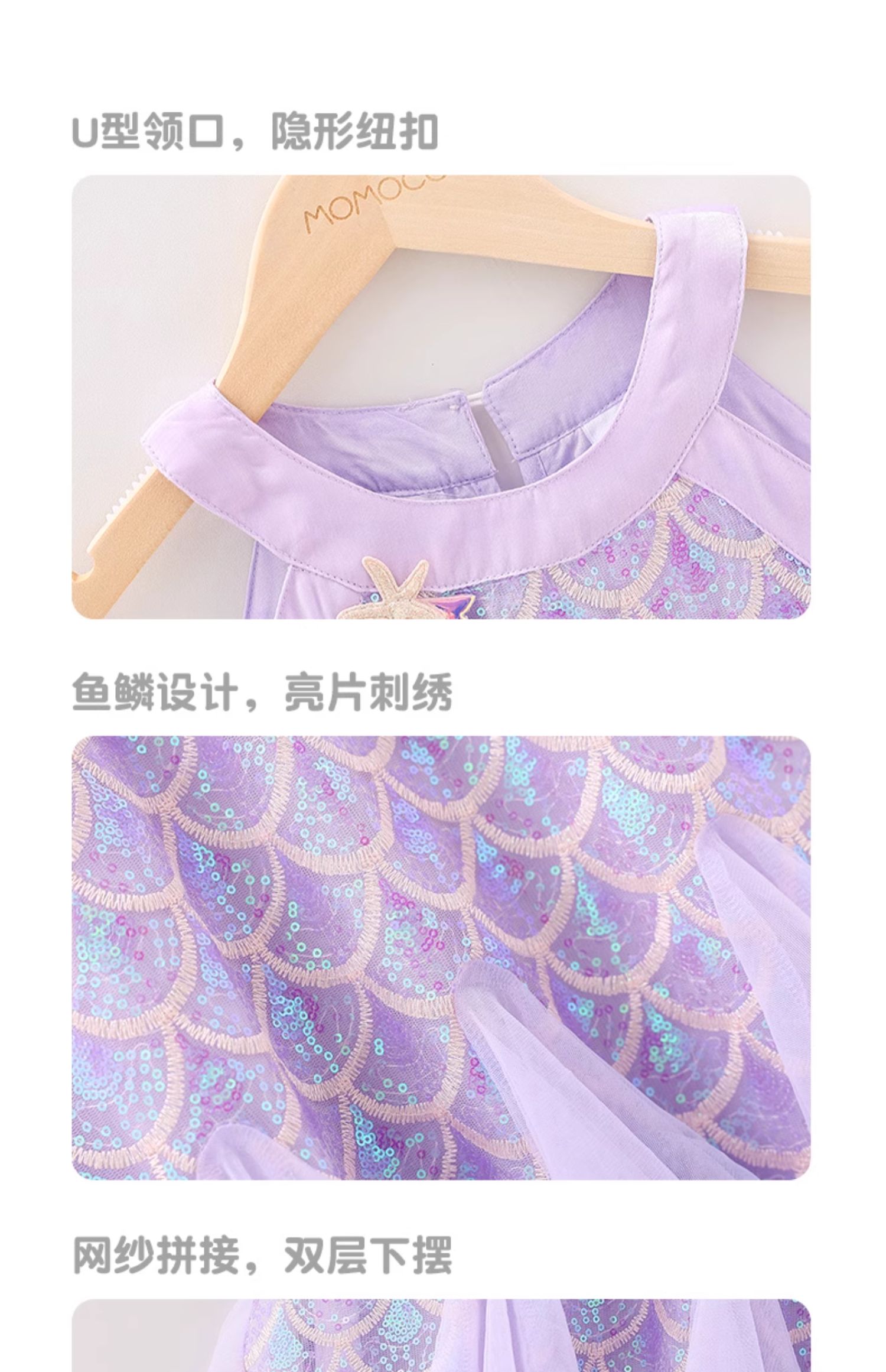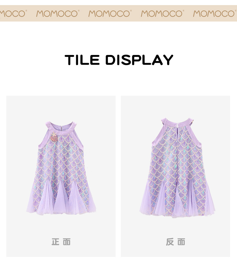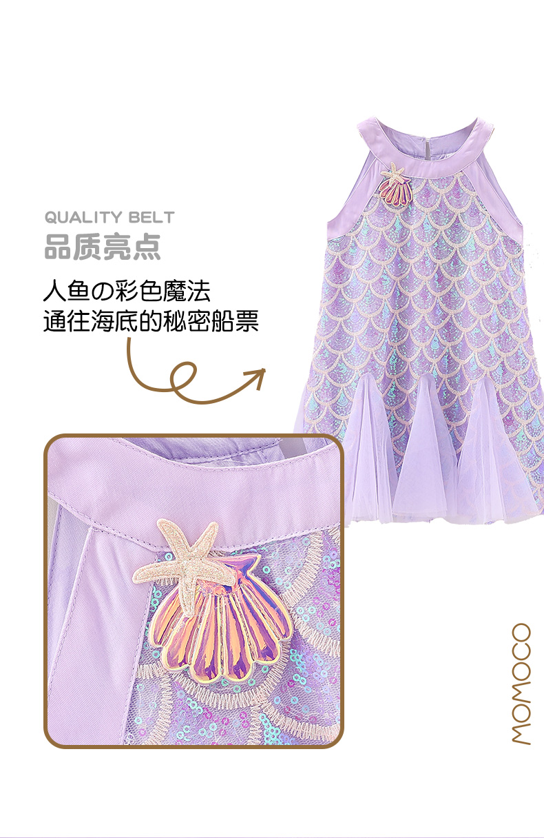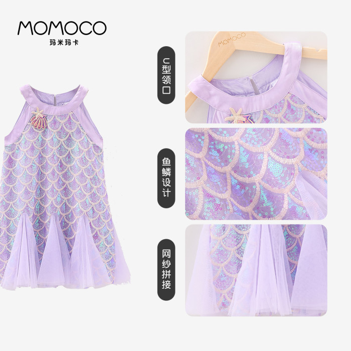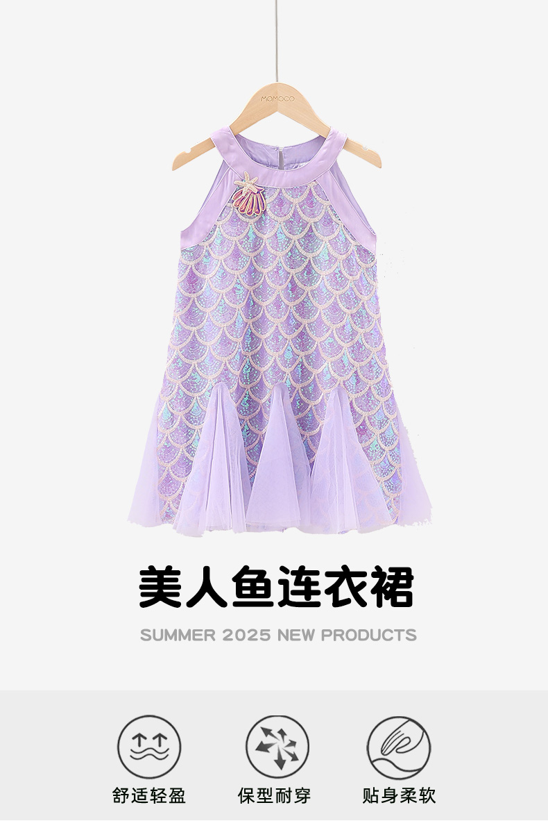 MOMOCO/瑪米瑪卡女童美人魚連衣裙2025新款夏季中大童公主掛脖裙