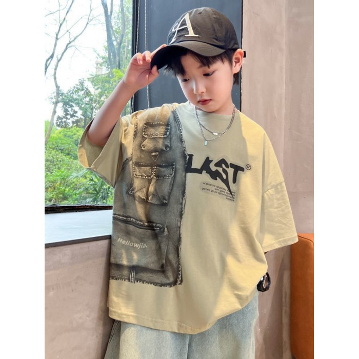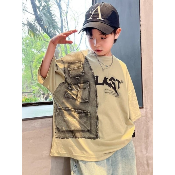 安哼安哼痞帥男童夏裝短袖t恤2025新款兒童夏季純棉上衣中大童夏