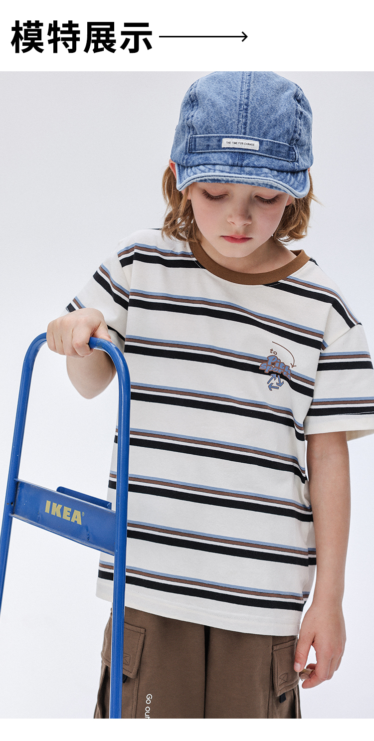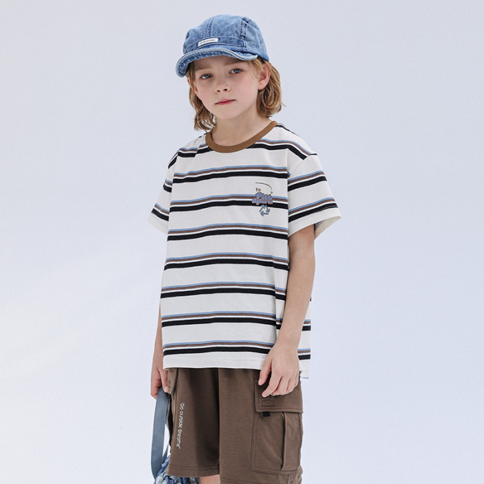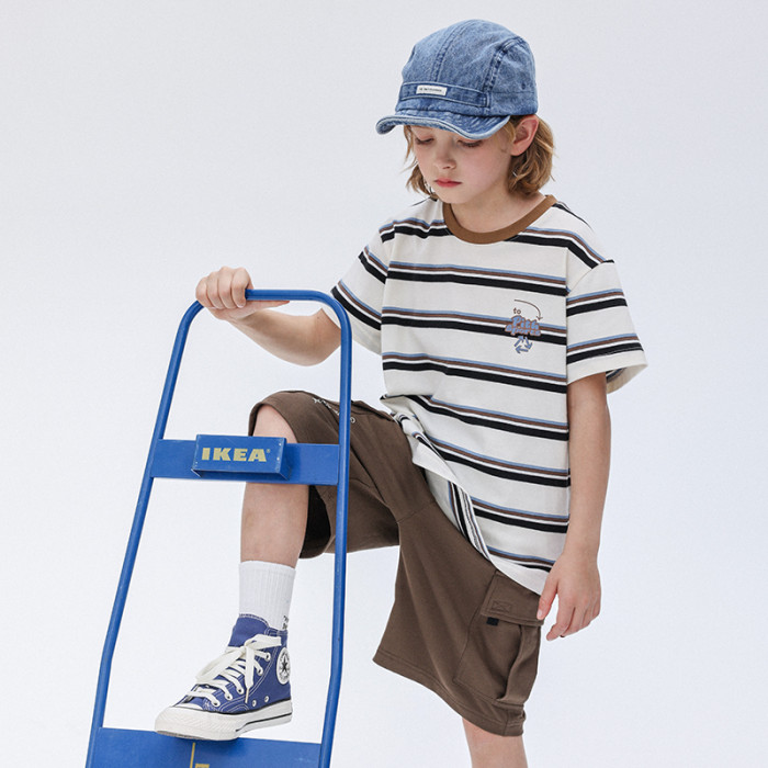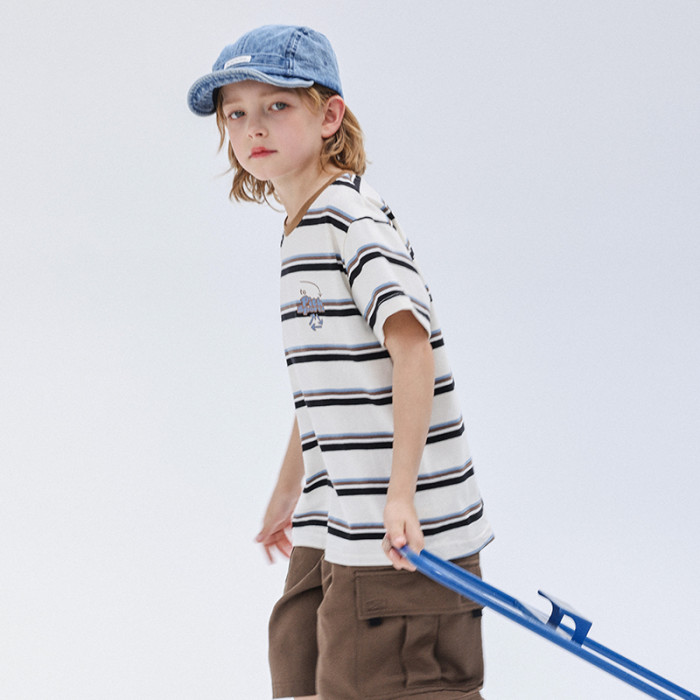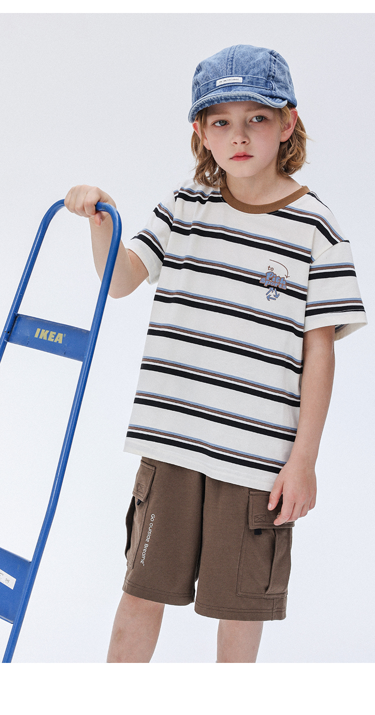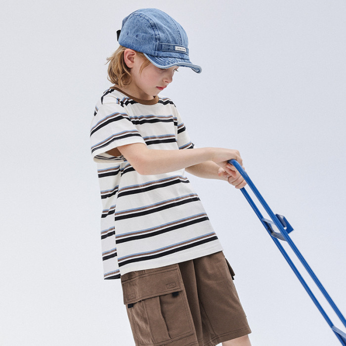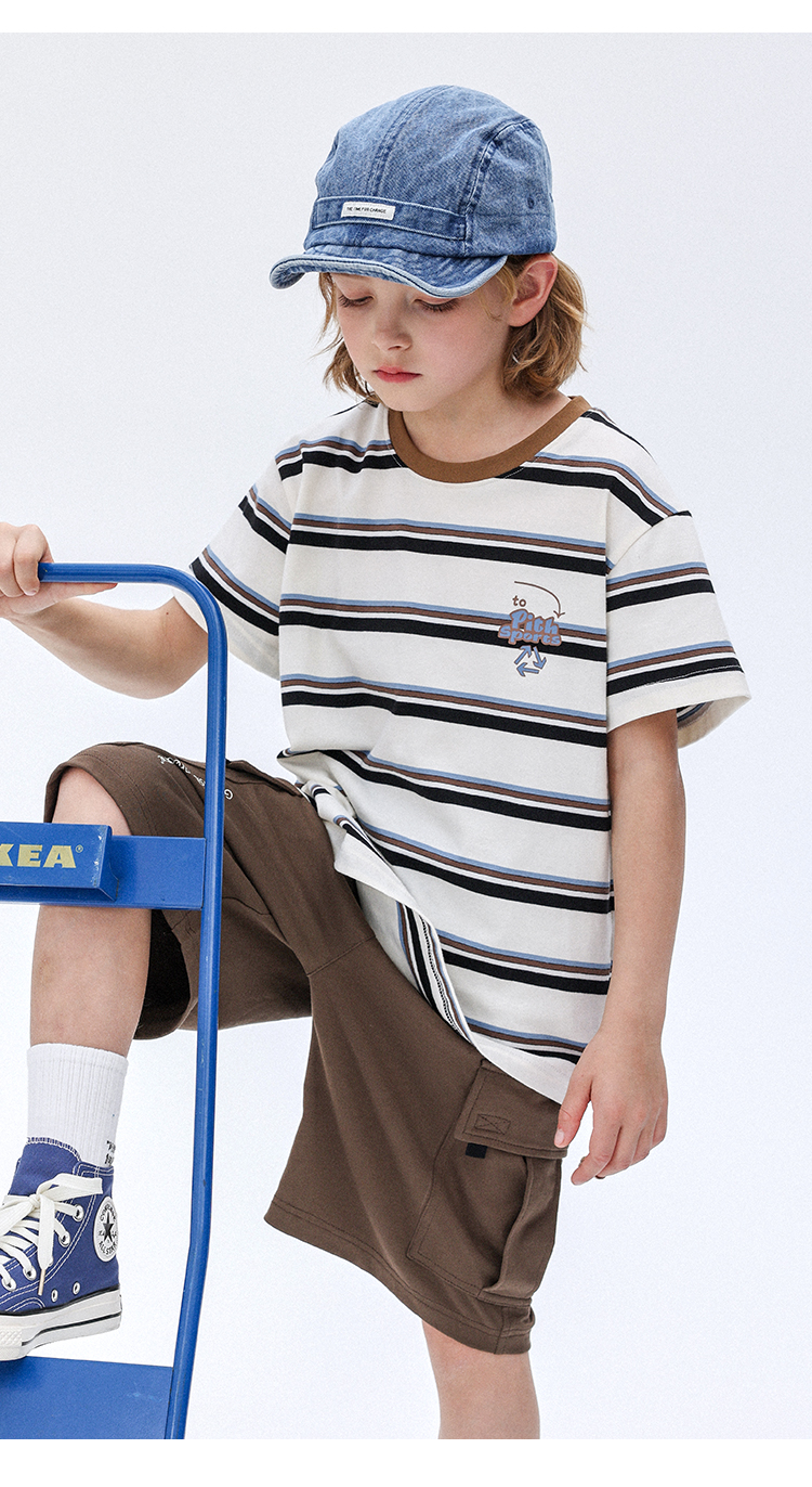 林淼童裝兒童短袖T恤2025夏季新款男童條紋半袖運動休閒百搭上衣