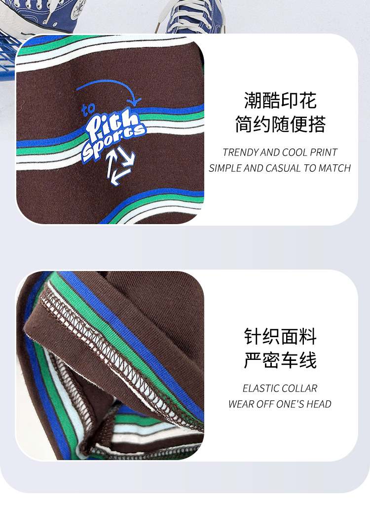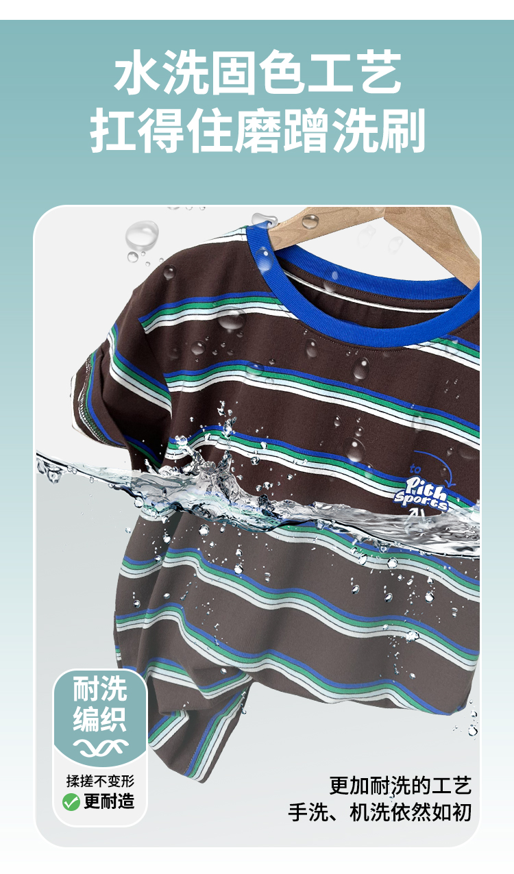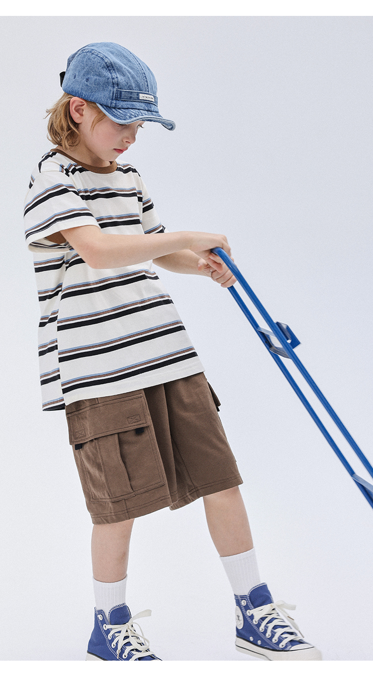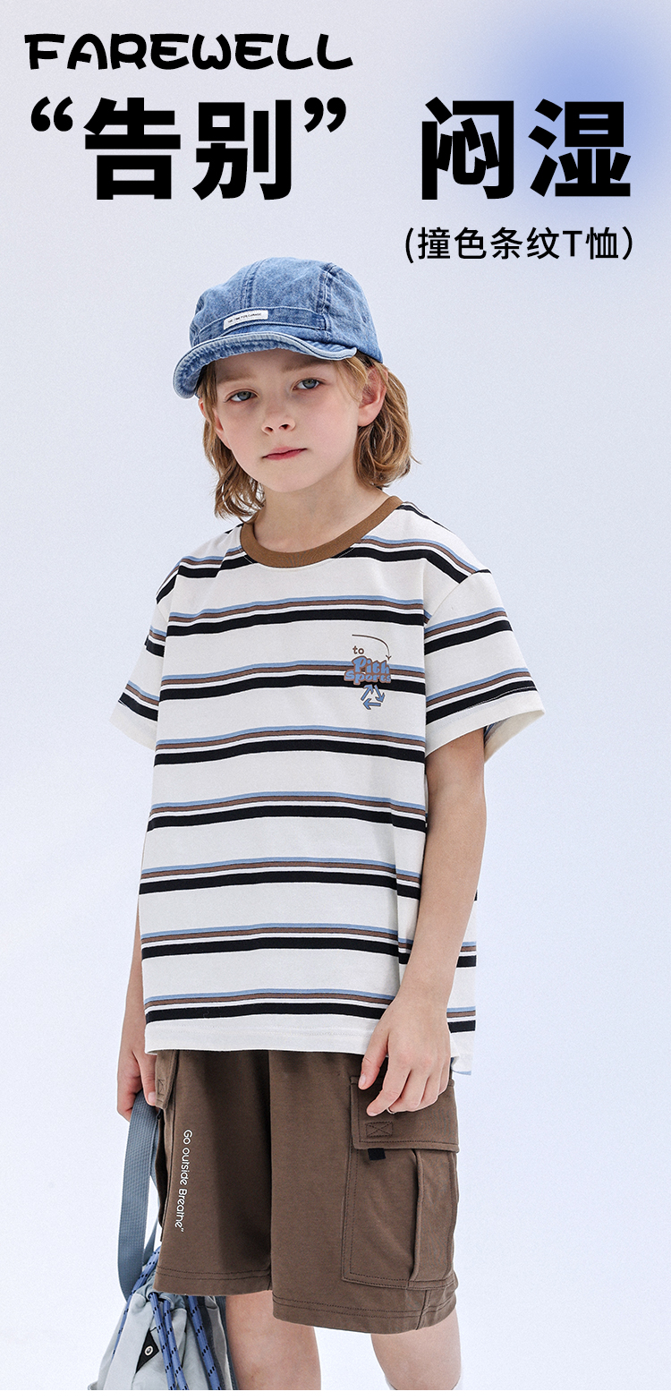 林淼童裝兒童短袖T恤2025夏季新款男童條紋半袖運動休閒百搭上衣