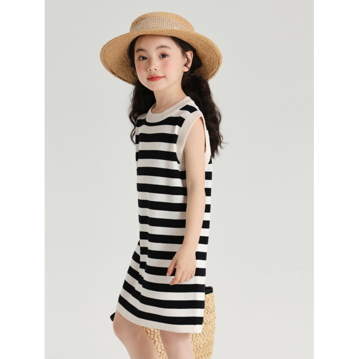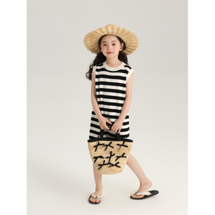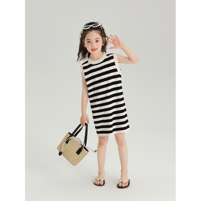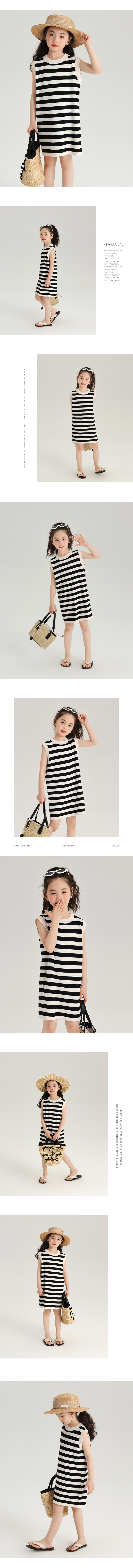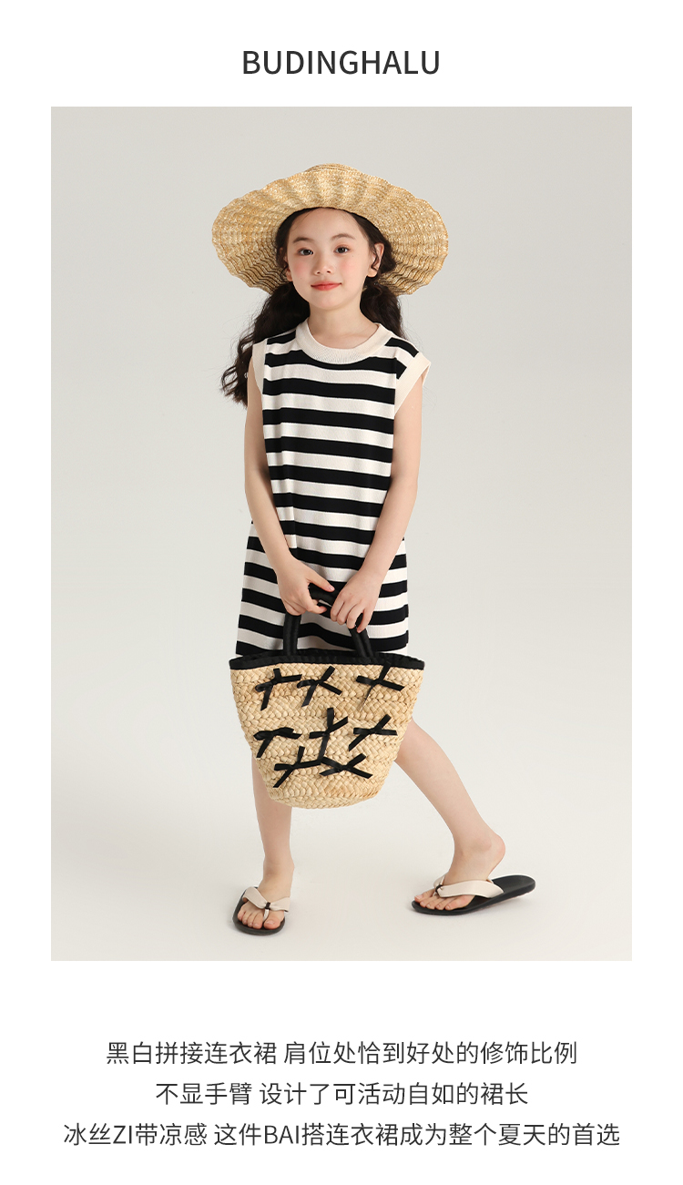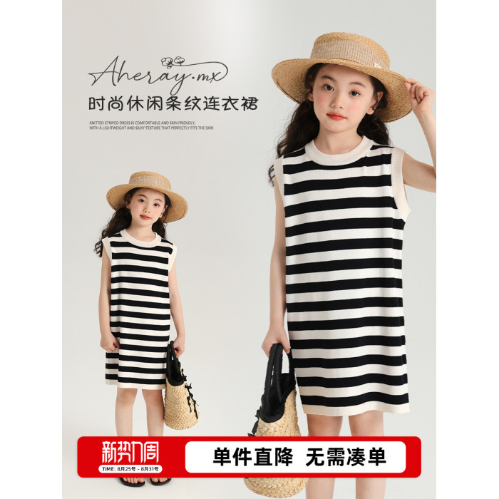 布丁哈魯夏裝女童休閒背心裙2025夏季新款兒童洋氣條紋長裙