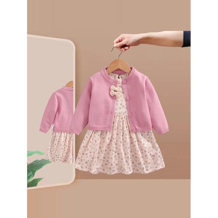 女童裝早秋裝春秋季2024新款兒童網紅洋氣時髦女寶線衫連衣裙套裝
