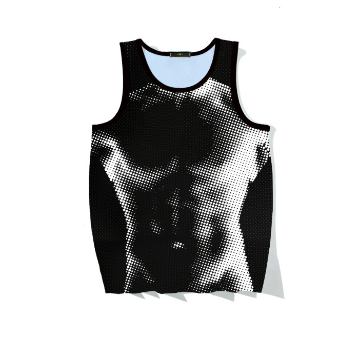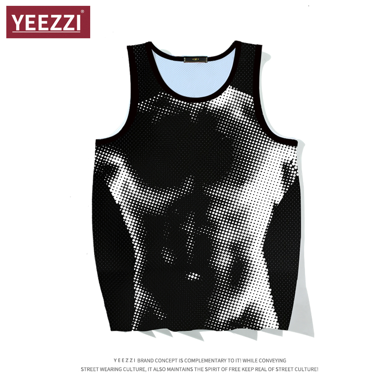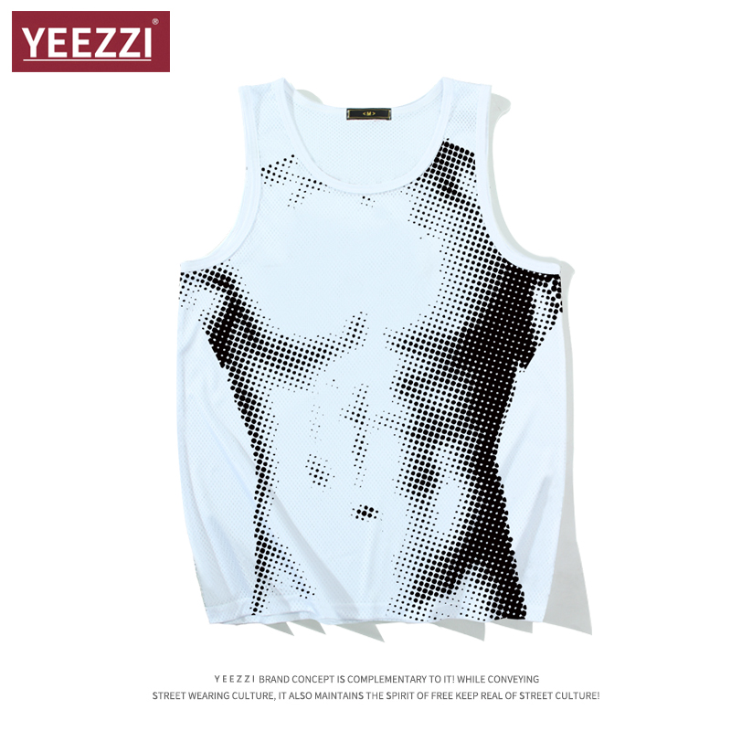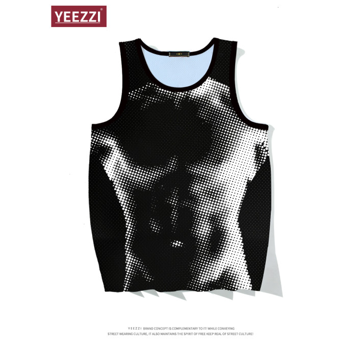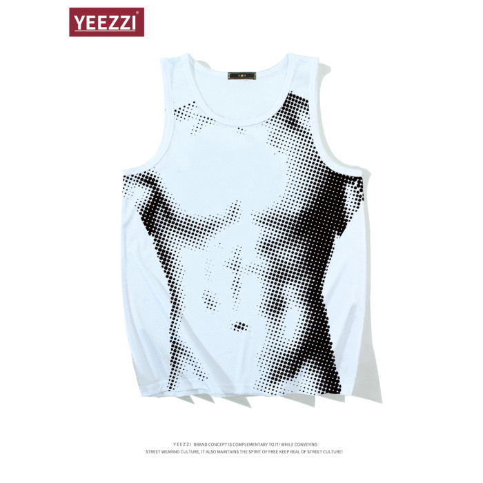 美式街頭趣味肌肉男波點印花背心籃球服男高街情侶上衣坎肩創意