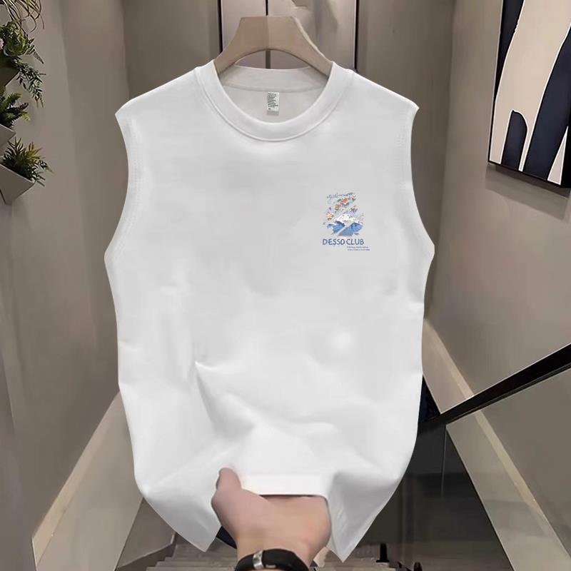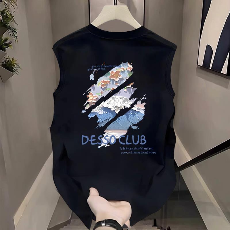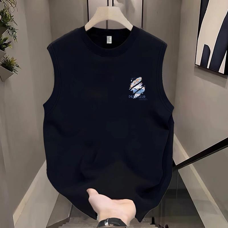 香港CLG潮牌美式潮流水墨剪影印花男無袖背心夏季寬松運動T恤坎肩