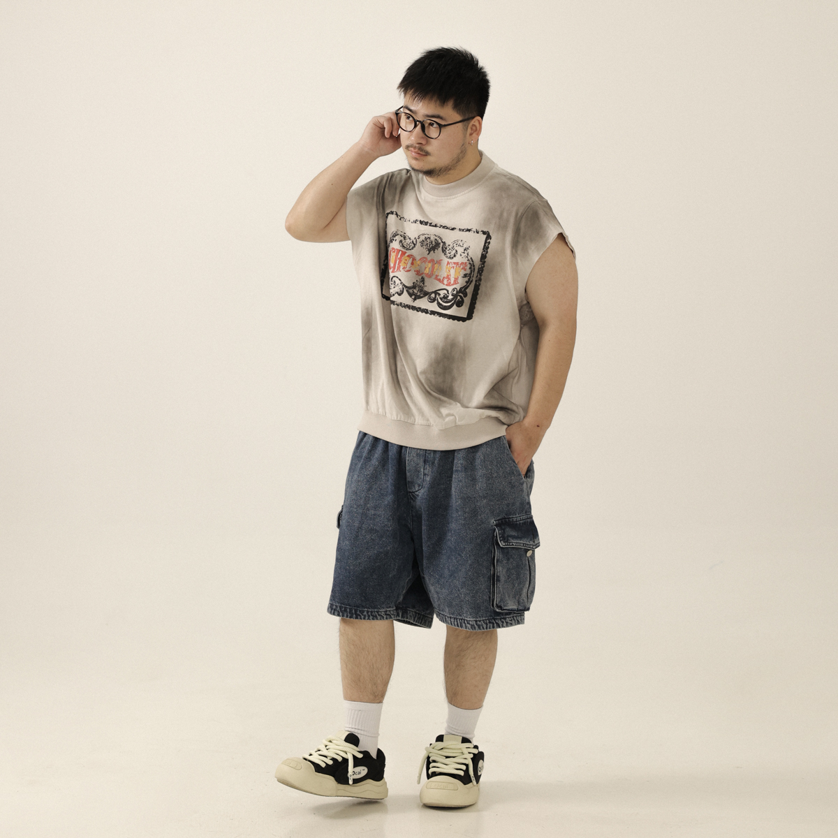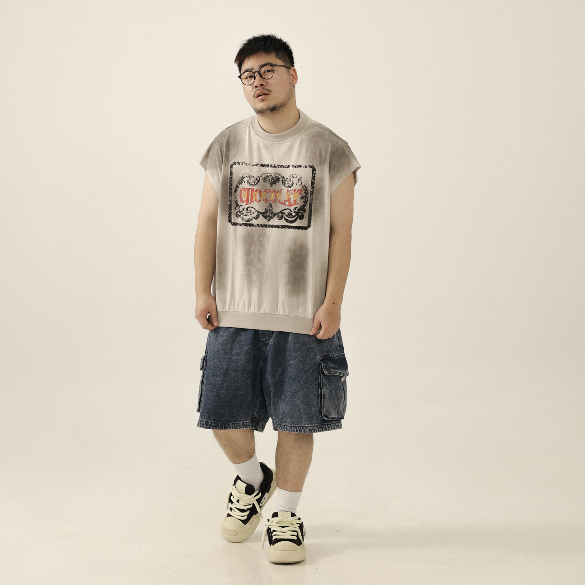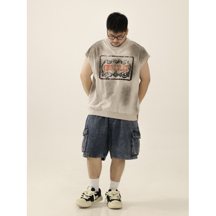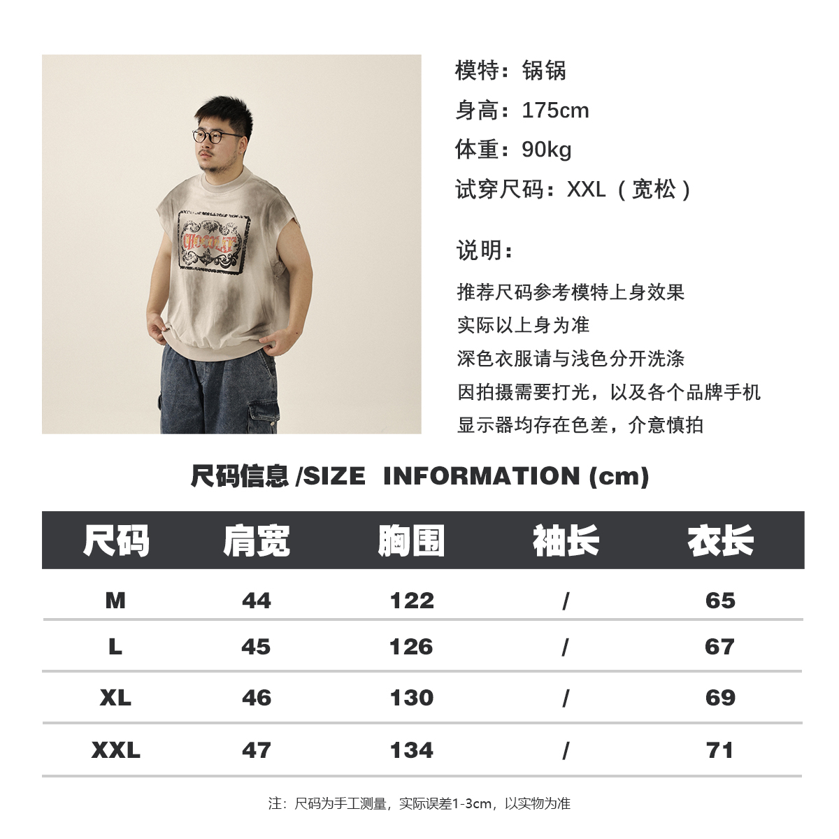 LIIISTORE2025夏款純棉復古做舊破洞無袖寬松休閒運動背心男