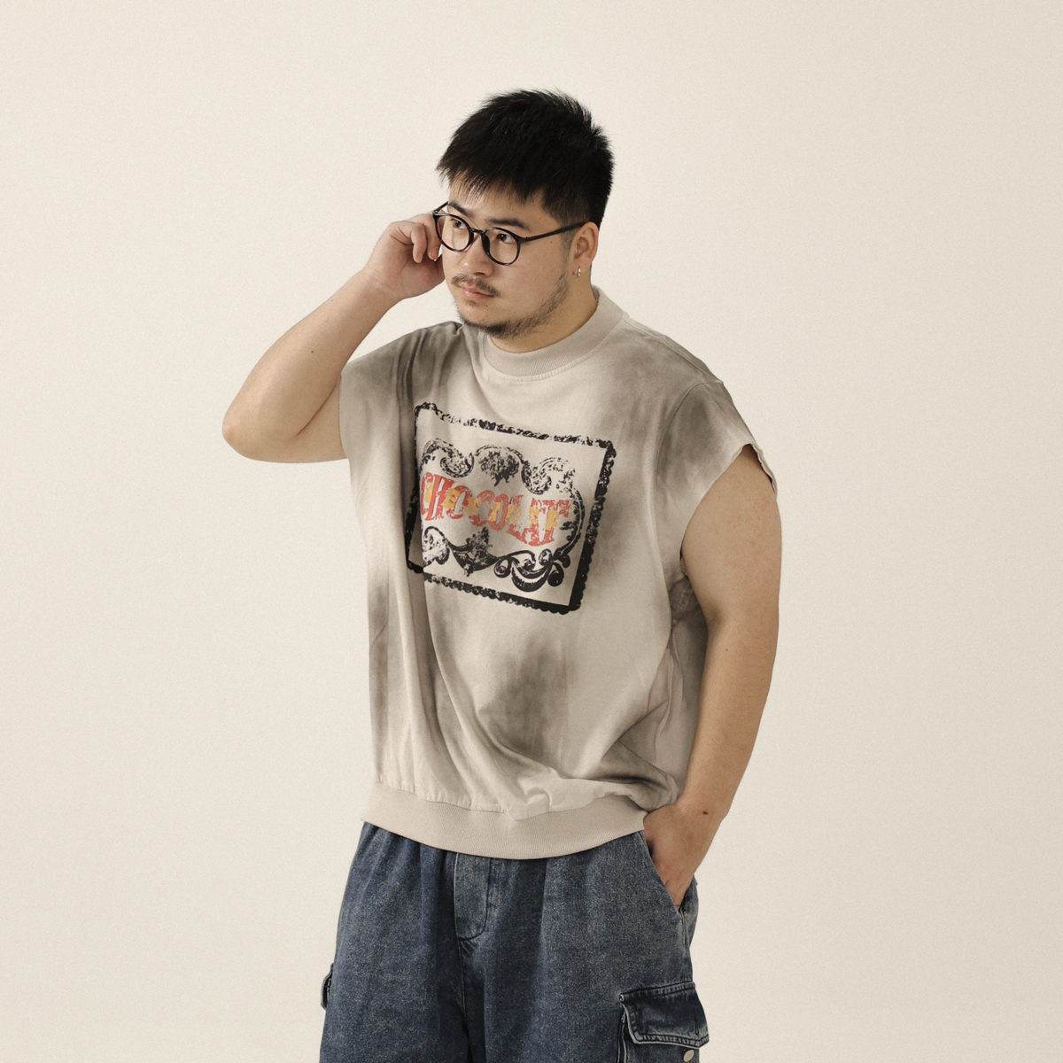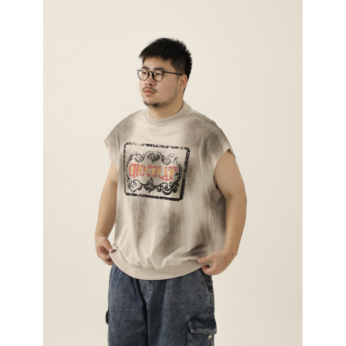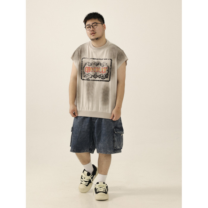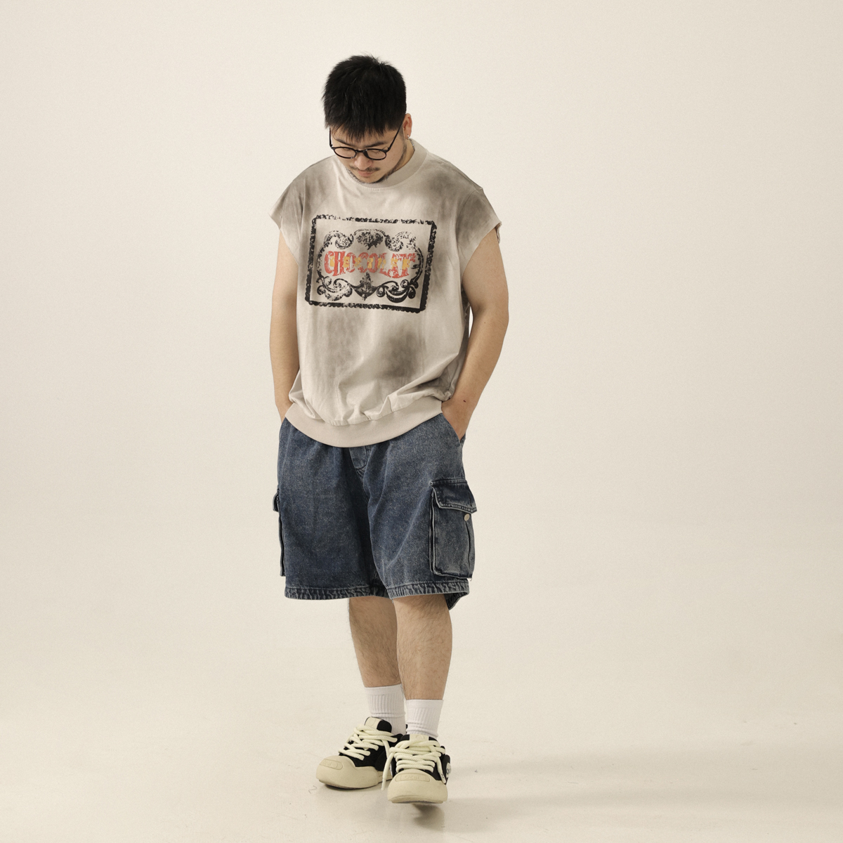 LIIISTORE2025夏款純棉復古做舊破洞無袖寬松休閒運動背心男
