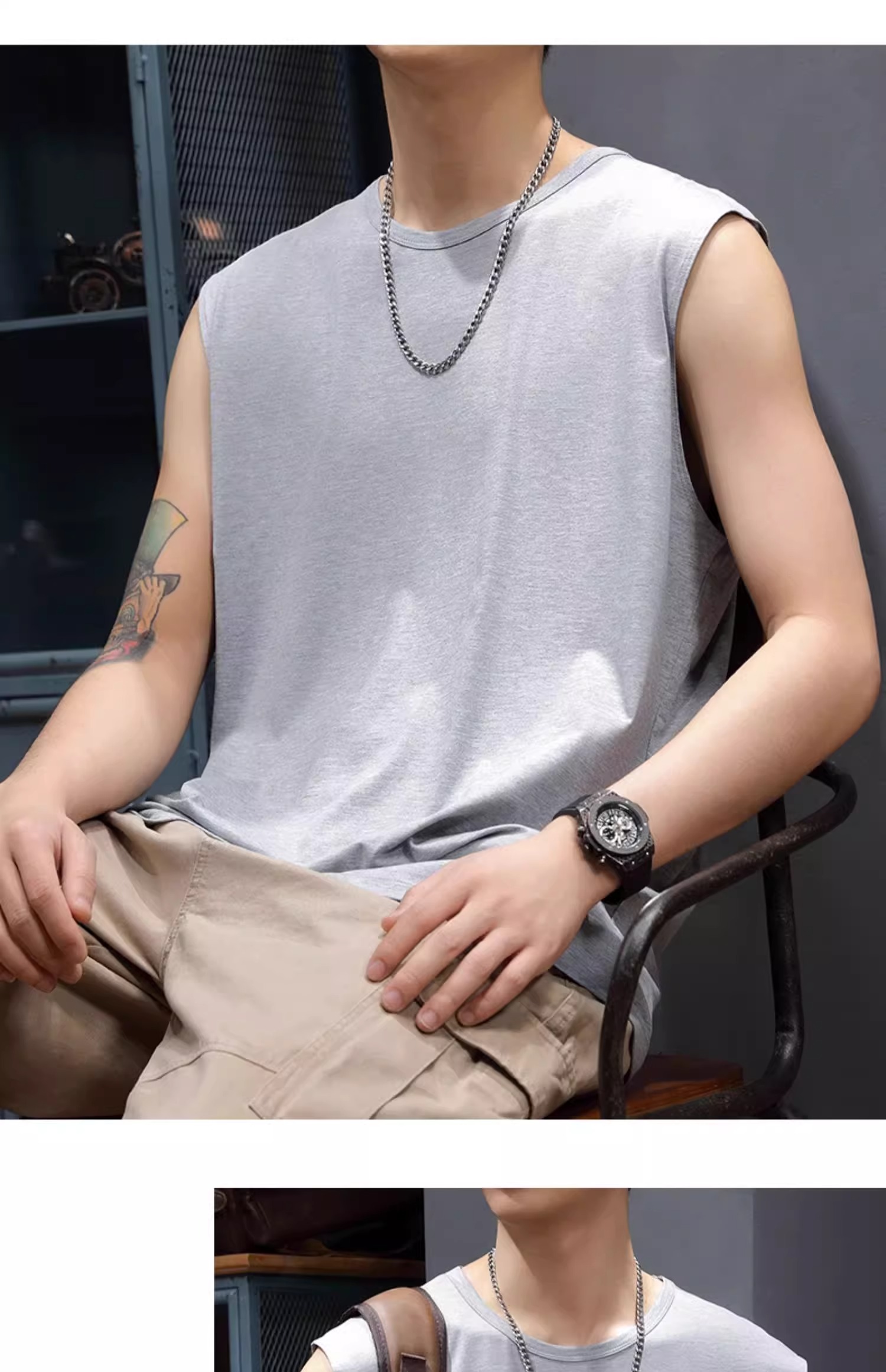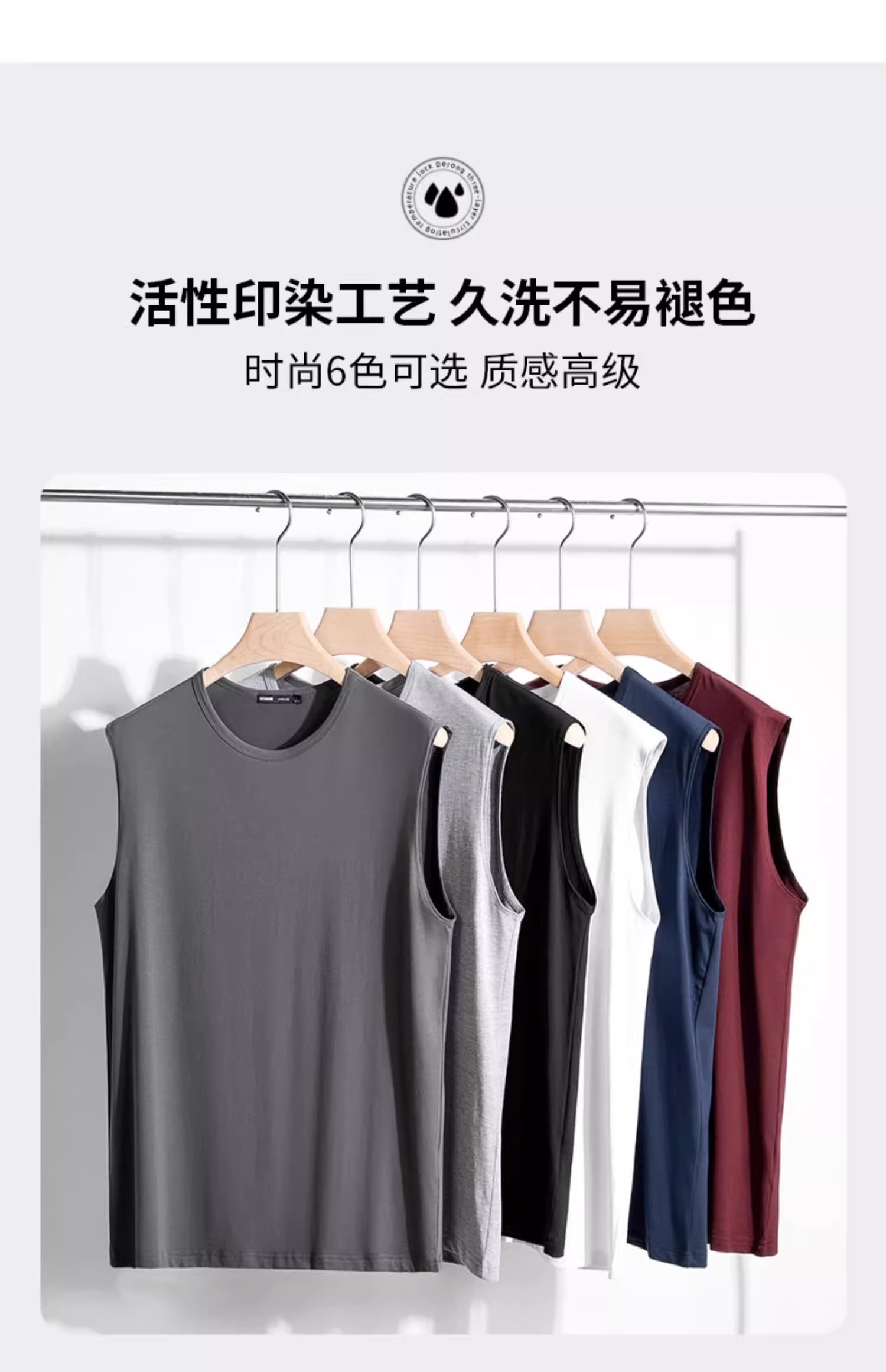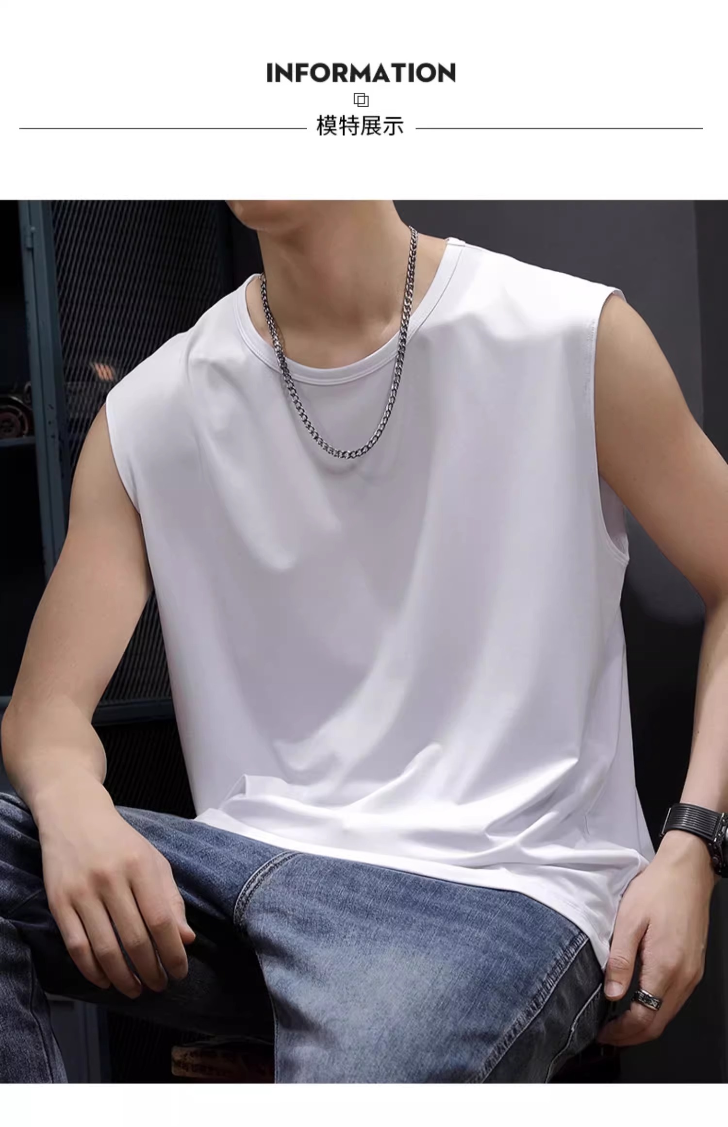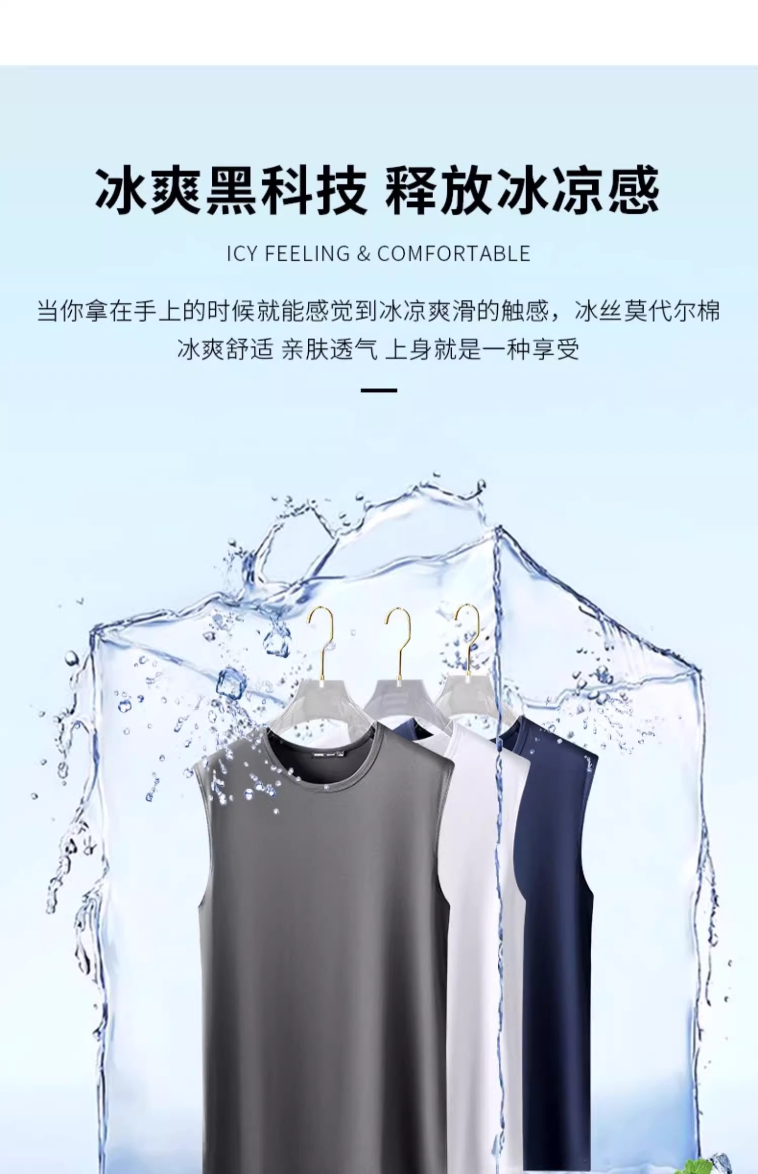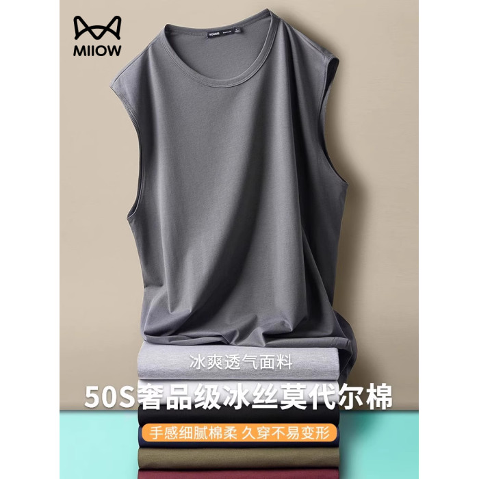 貓人冰絲莫代爾棉背心男士夏季新款寬松無袖T恤涼感薄款坎肩汗衫
