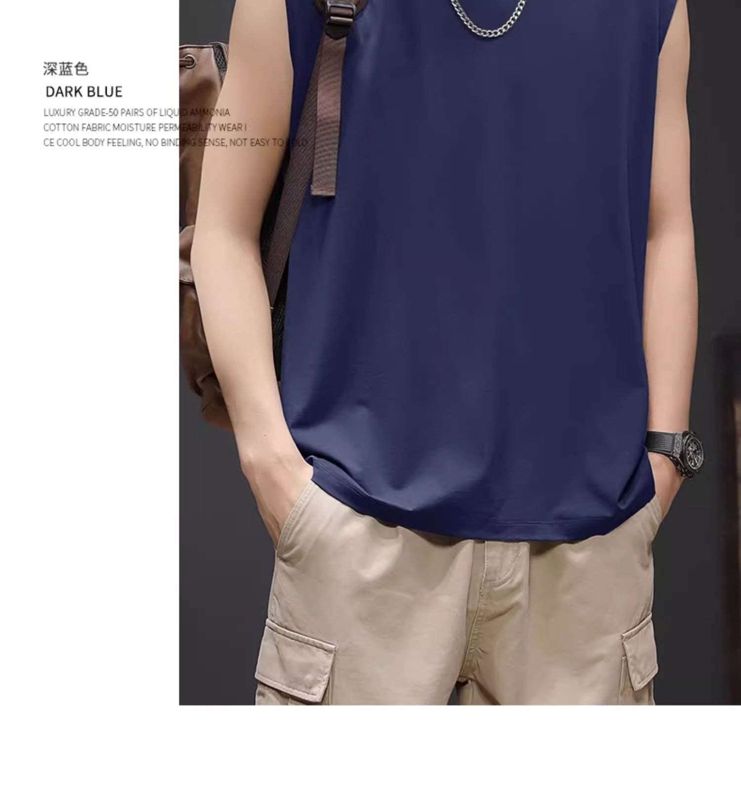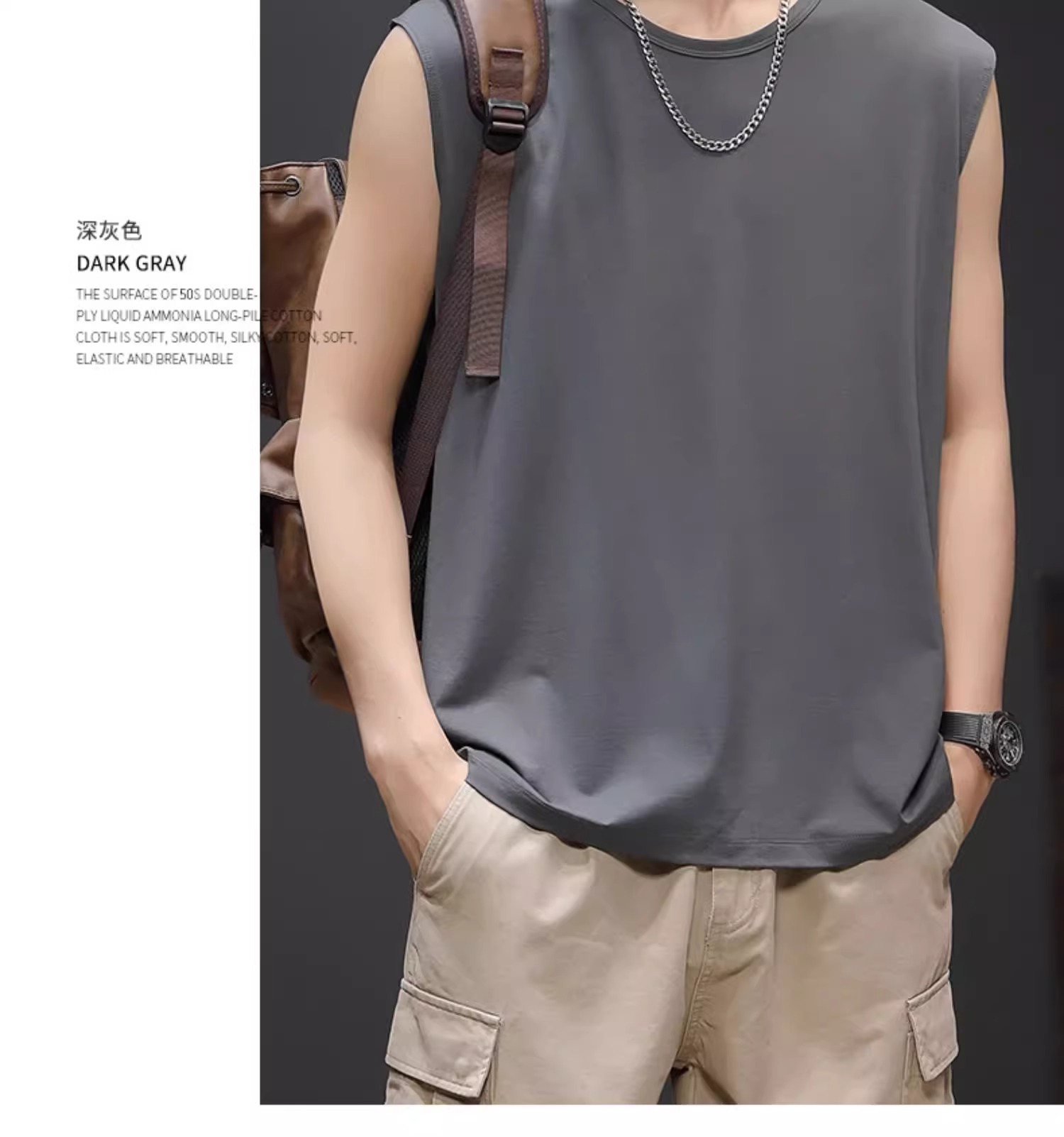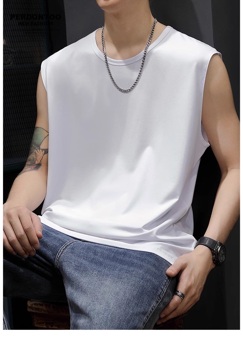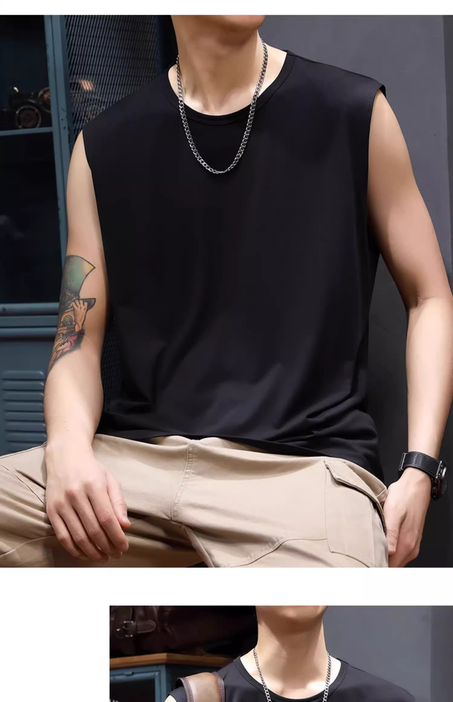 貓人冰絲莫代爾棉背心男士夏季新款寬松無袖T恤涼感薄款坎肩汗衫