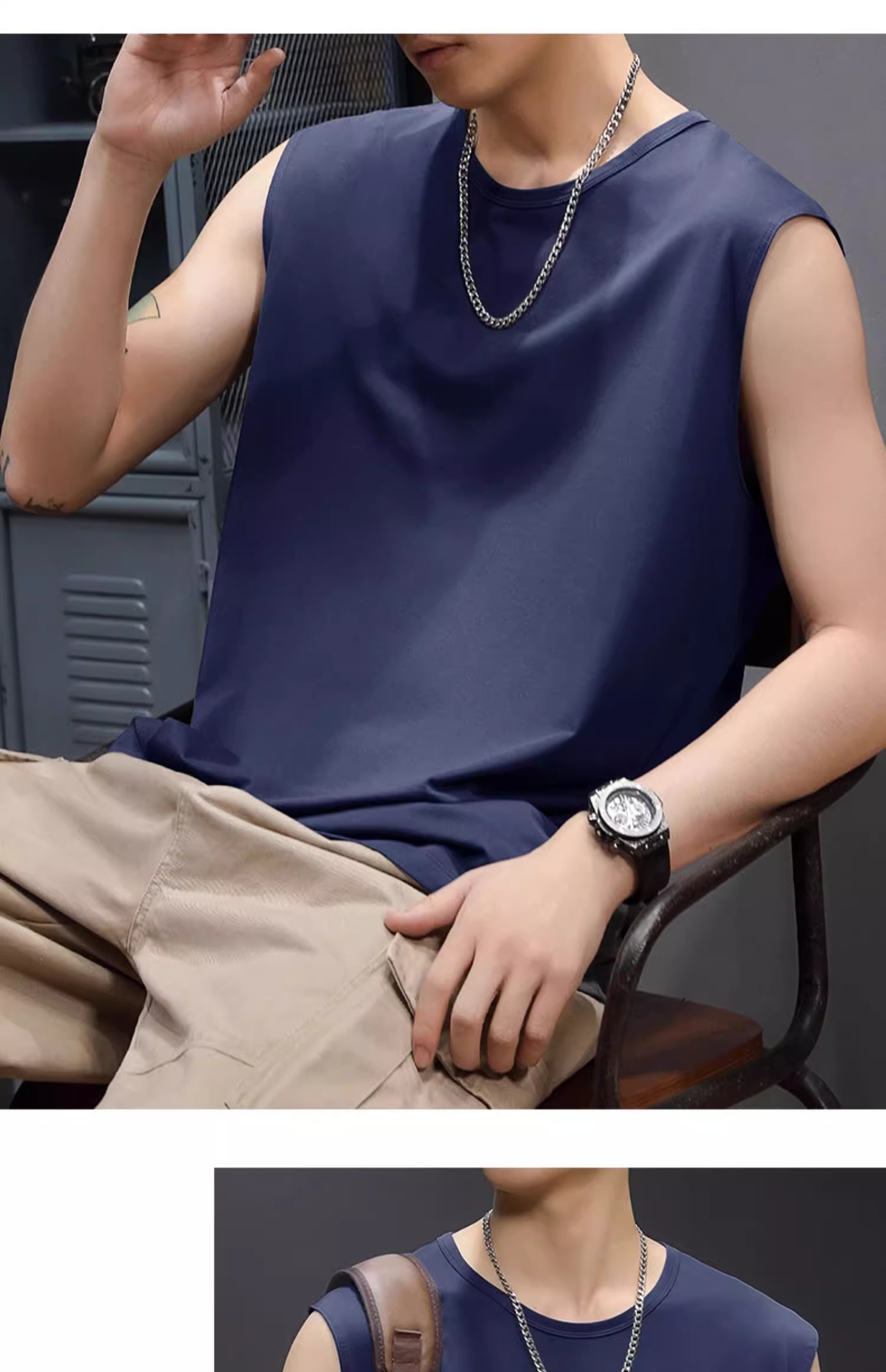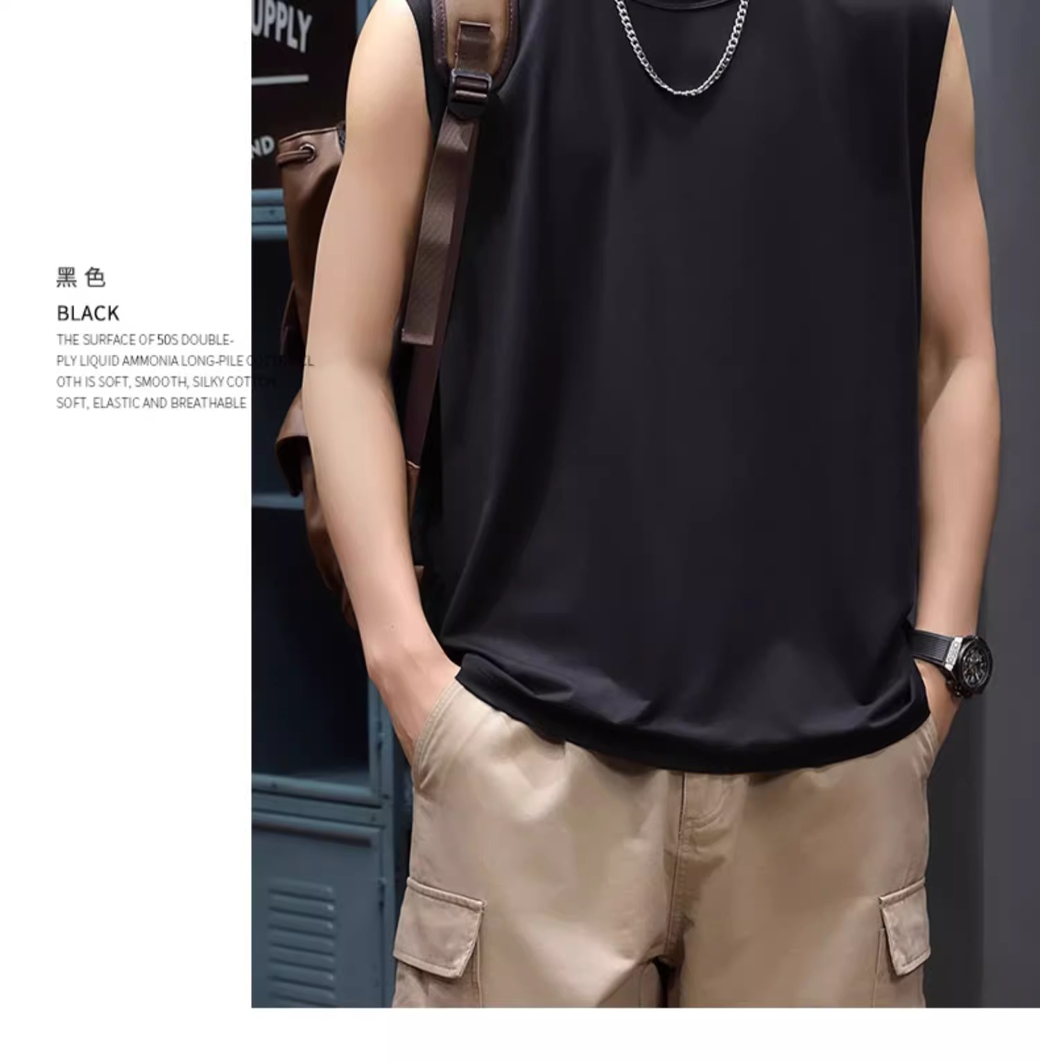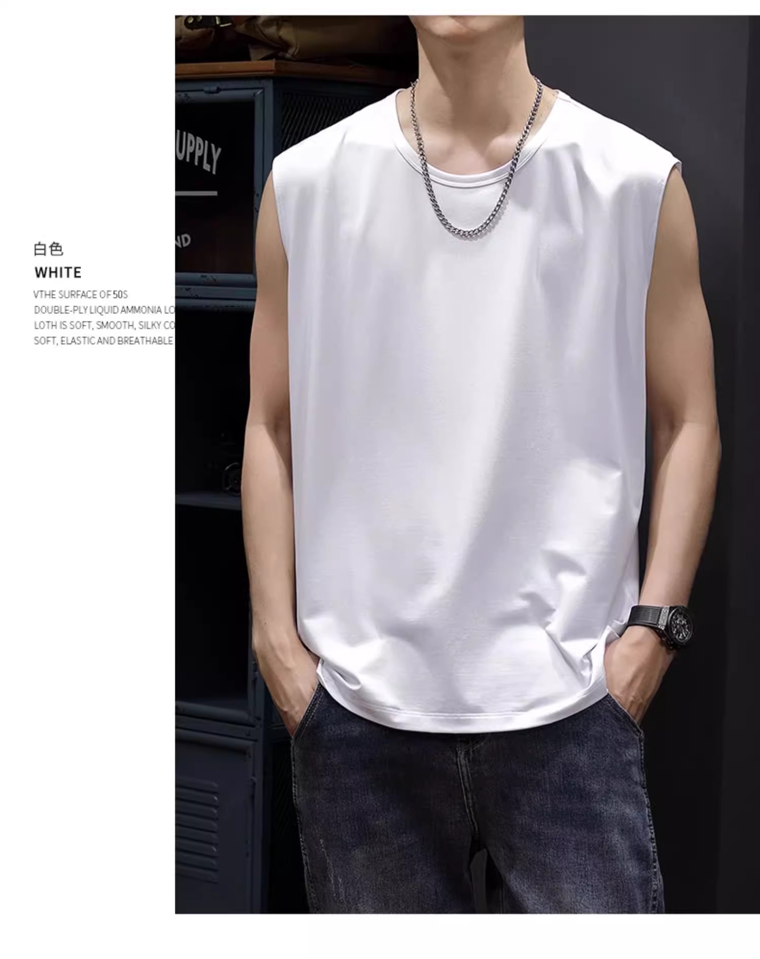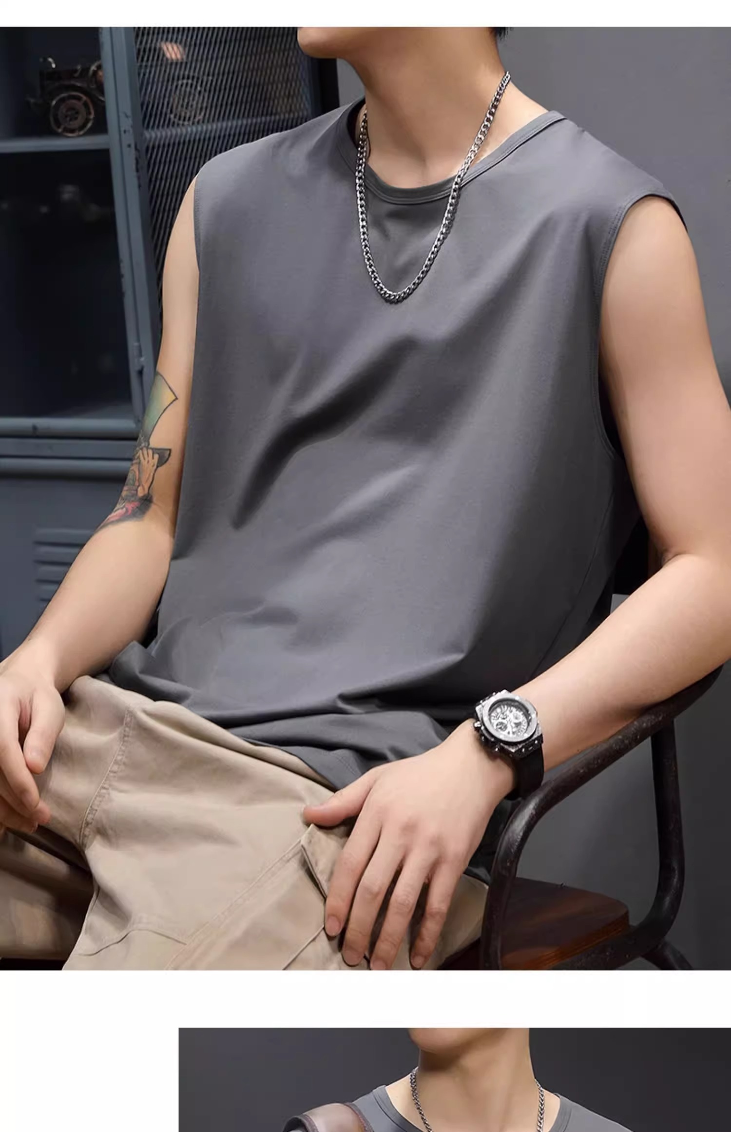 貓人冰絲莫代爾棉背心男士夏季新款寬松無袖T恤涼感薄款坎肩汗衫