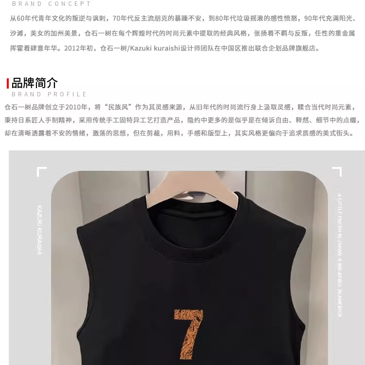 倉石一樹潮牌美式數字7休閒背心男夏季款寬松運動健身男士無袖T恤