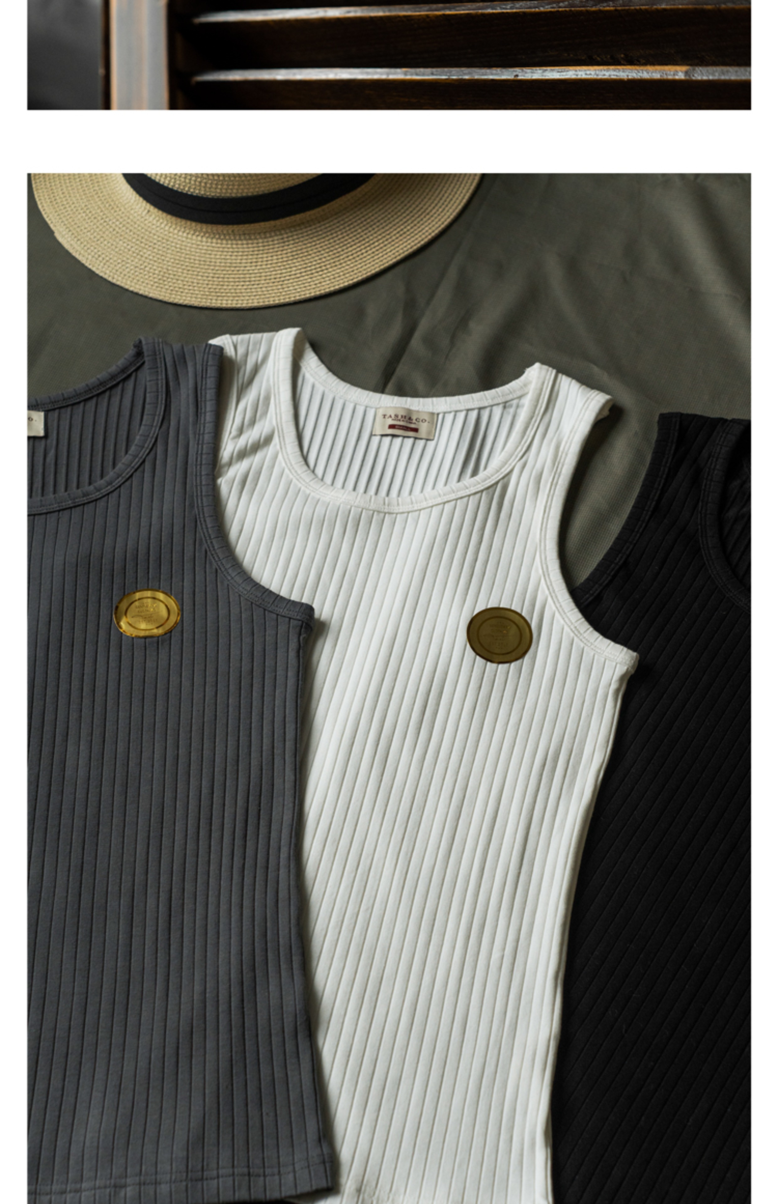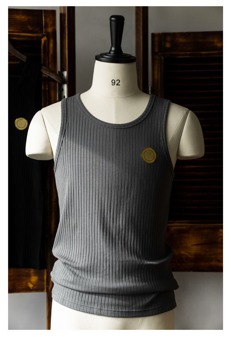 Tash&Co.復古彈力條紋打底內搭背心基礎款棉修身美式修身夏季純色