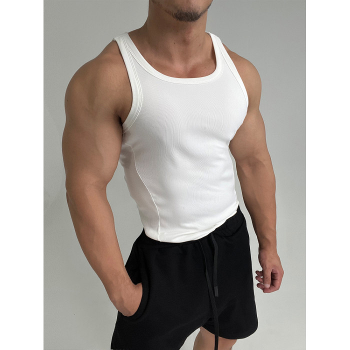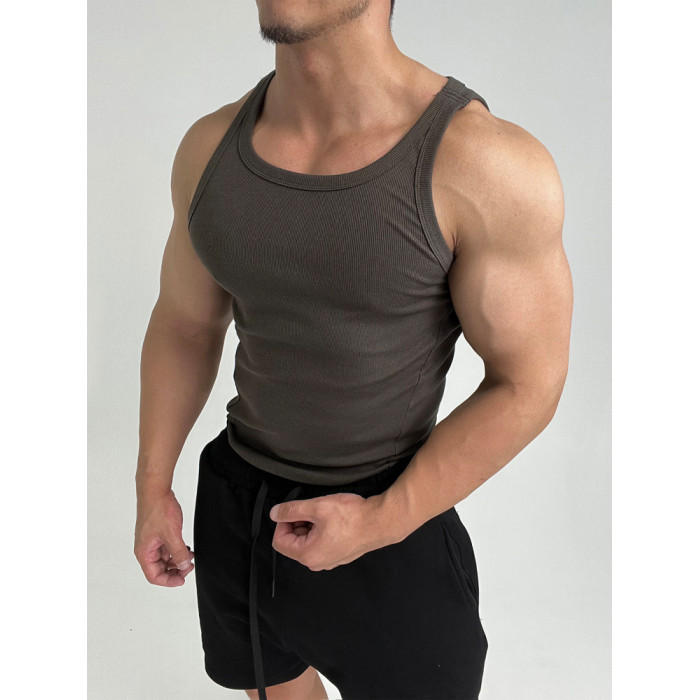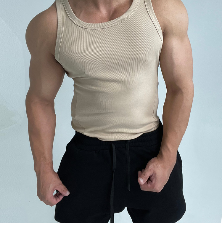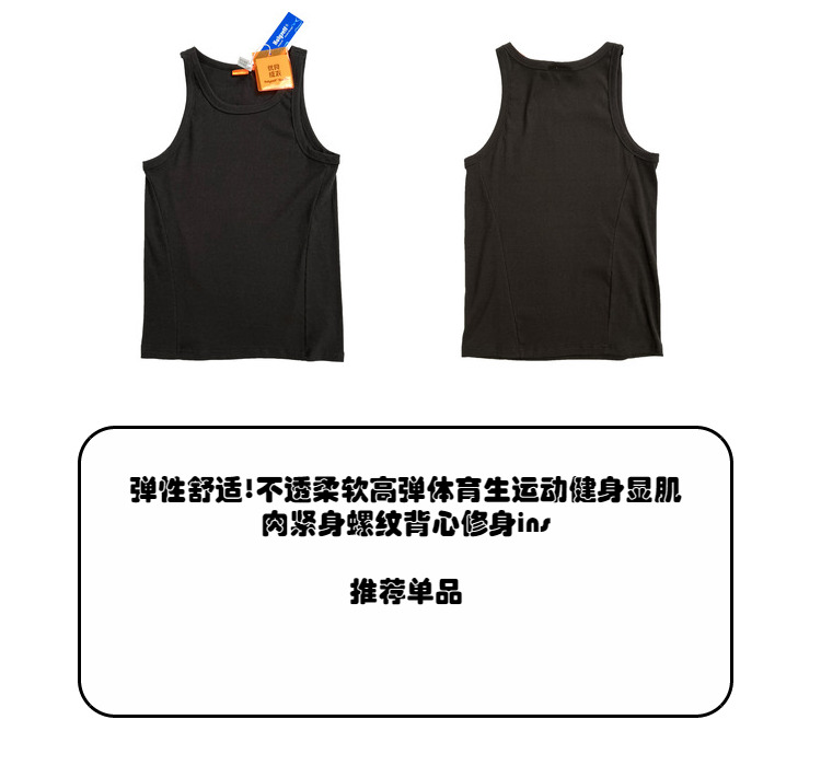 彈性舒適!不透柔軟高彈體育生運動健身顯肌肉緊身螺紋背心修身ins