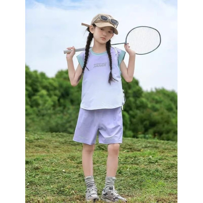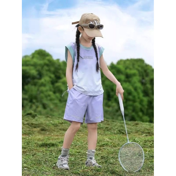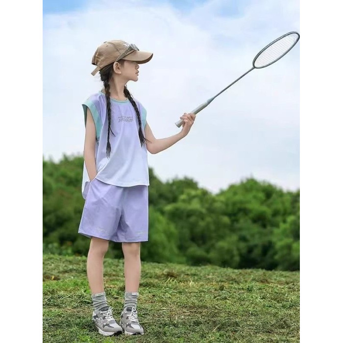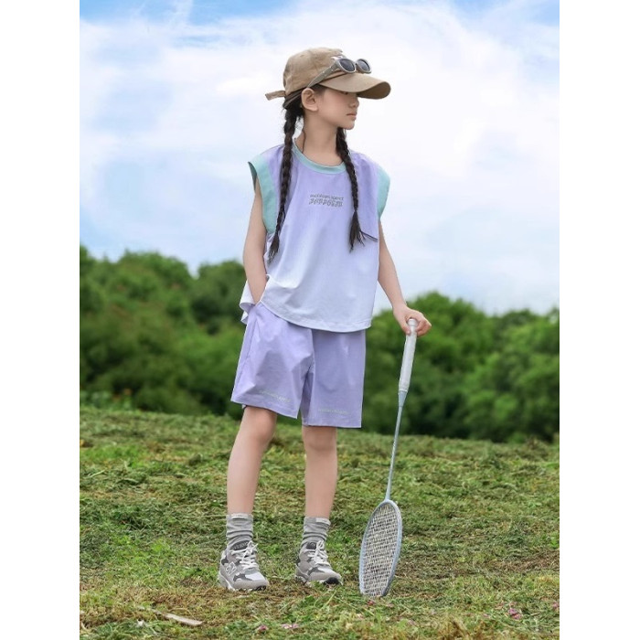 女童速乾運動套裝夏冰絲大童2025新款兒童夏季無袖背心短褲兩件套