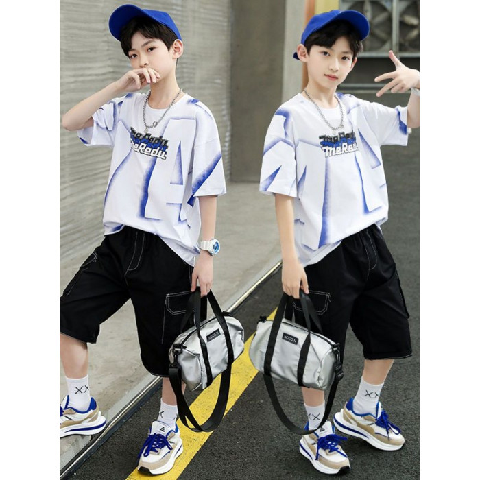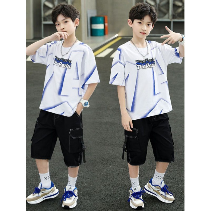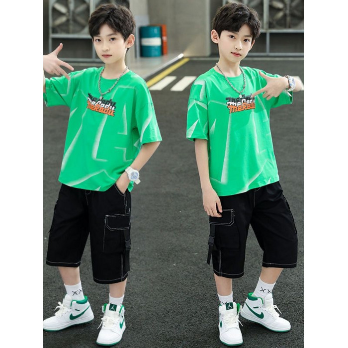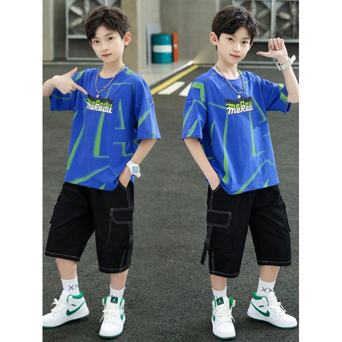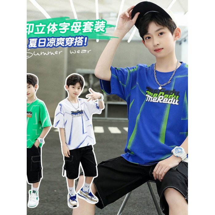 安哼安哼童裝男童短袖套裝夏裝2025新款韓版兒童中大童酷帥洋氣網