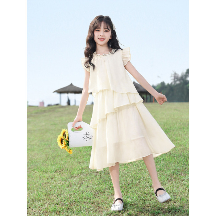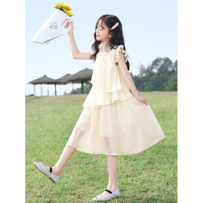 女童連衣裙夏裝2025新款兒童洋氣雪紡公主裙子大童夏季蛋糕沙灘裙