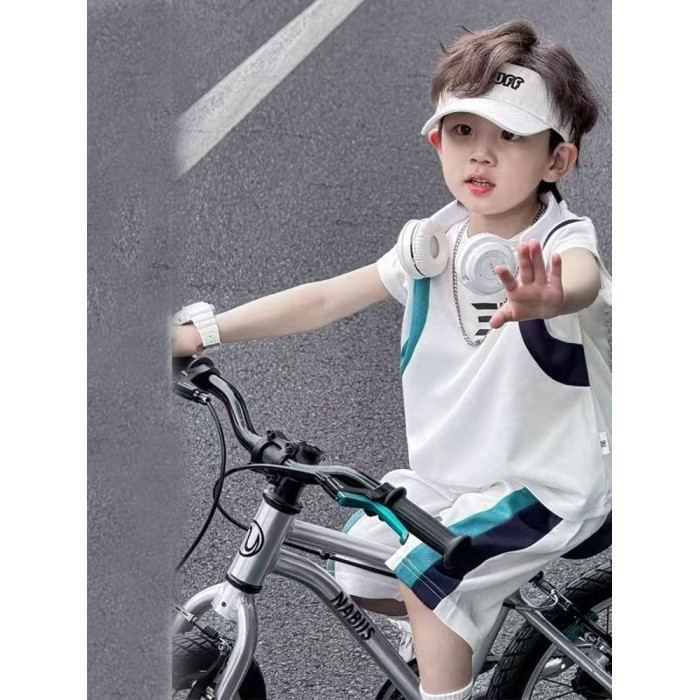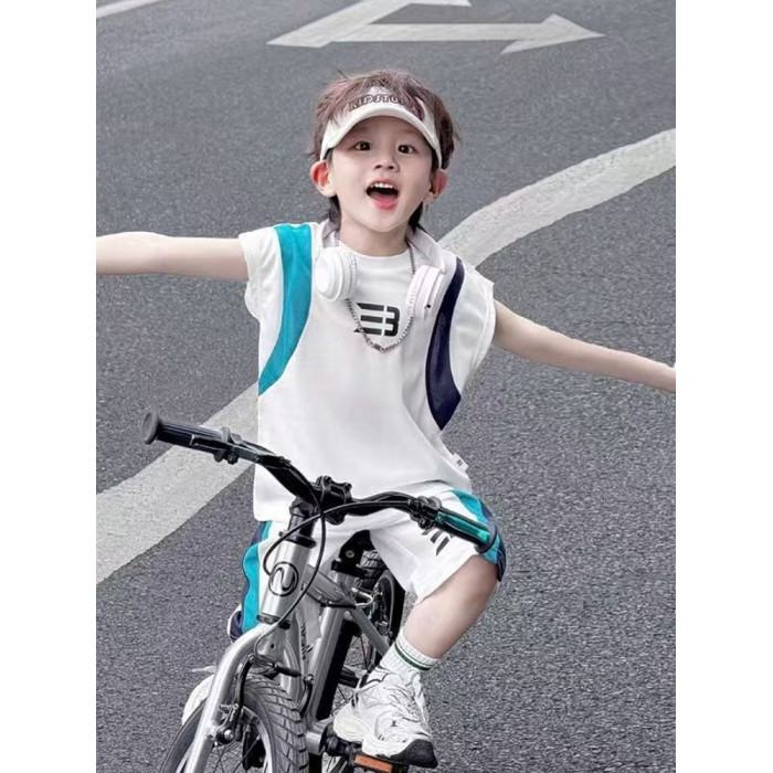 安哼安哼男童速乾套裝背心夏裝新款男童運動夏季套裝兒童中大童兩
