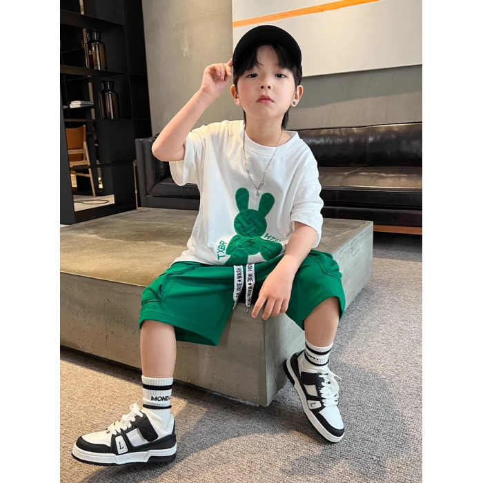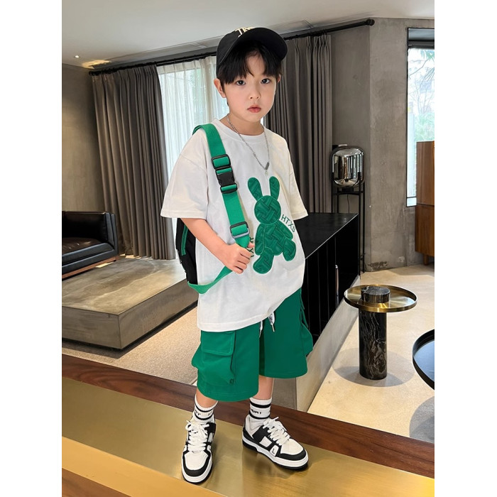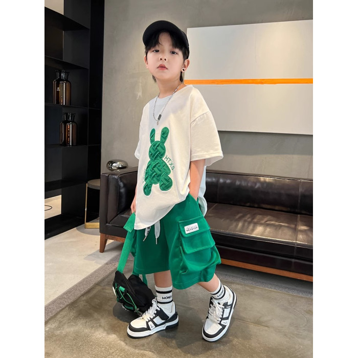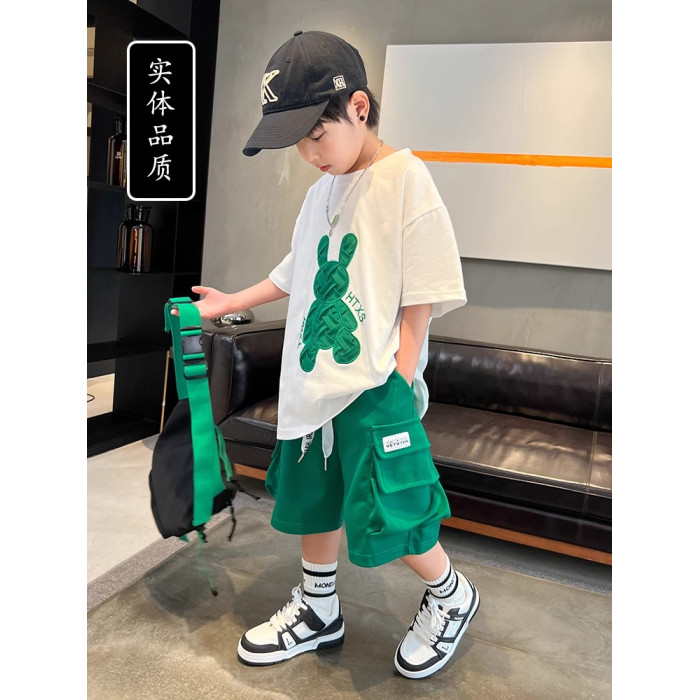 英國NextKiss男童夏裝套裝2025新款兒童短袖潮酷帥氣時髦運動衣服