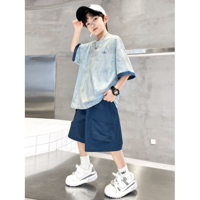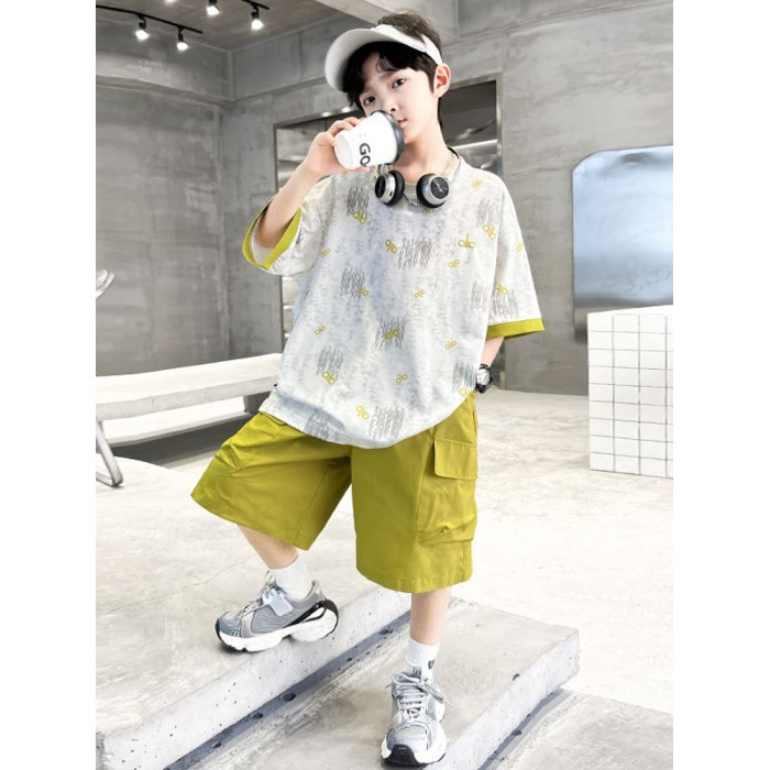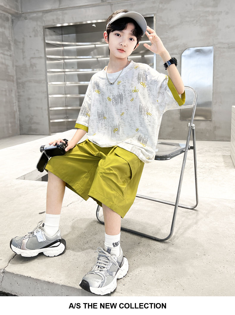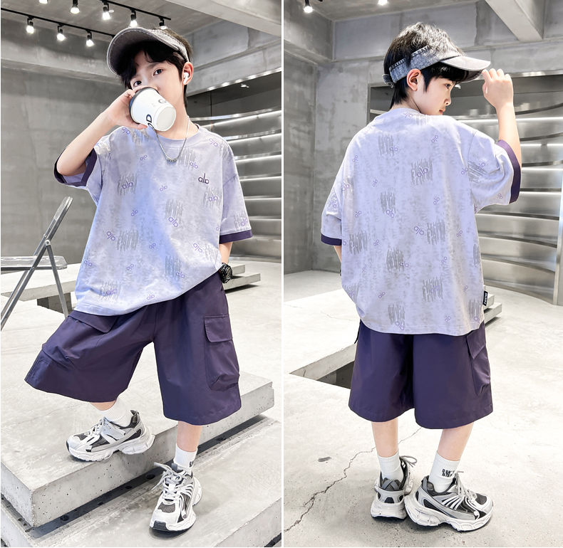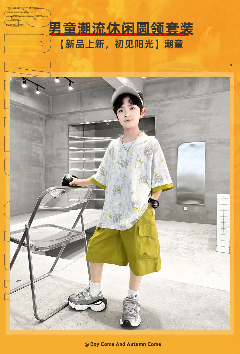 安哼安哼男童夏款套裝2025新款夏季短袖中大兒童男孩夏裝七分褲兩