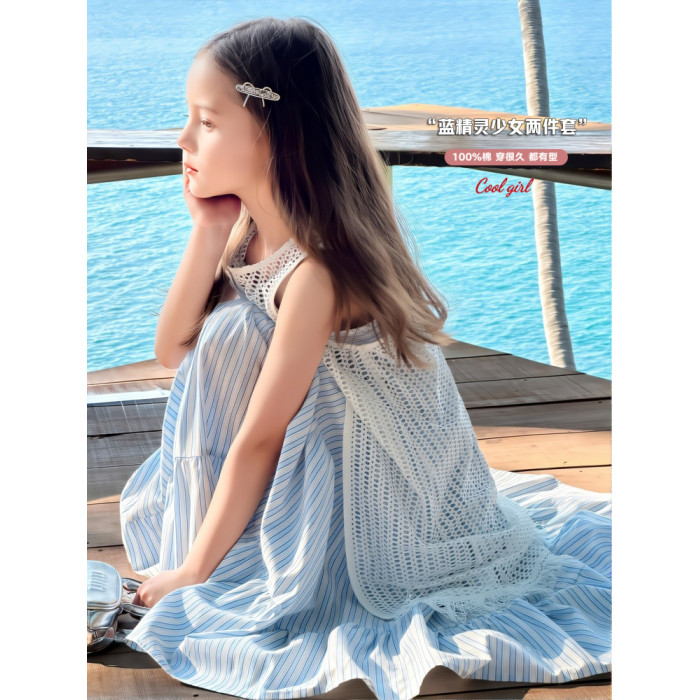 女童連衣裙2025夏季新款兒童洋氣吊帶裙兩件套無袖純棉母女裝裙子