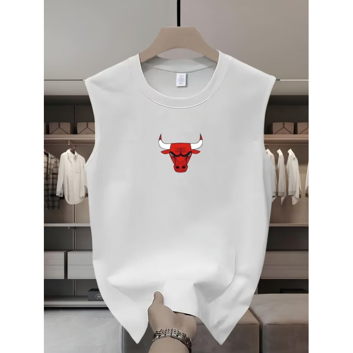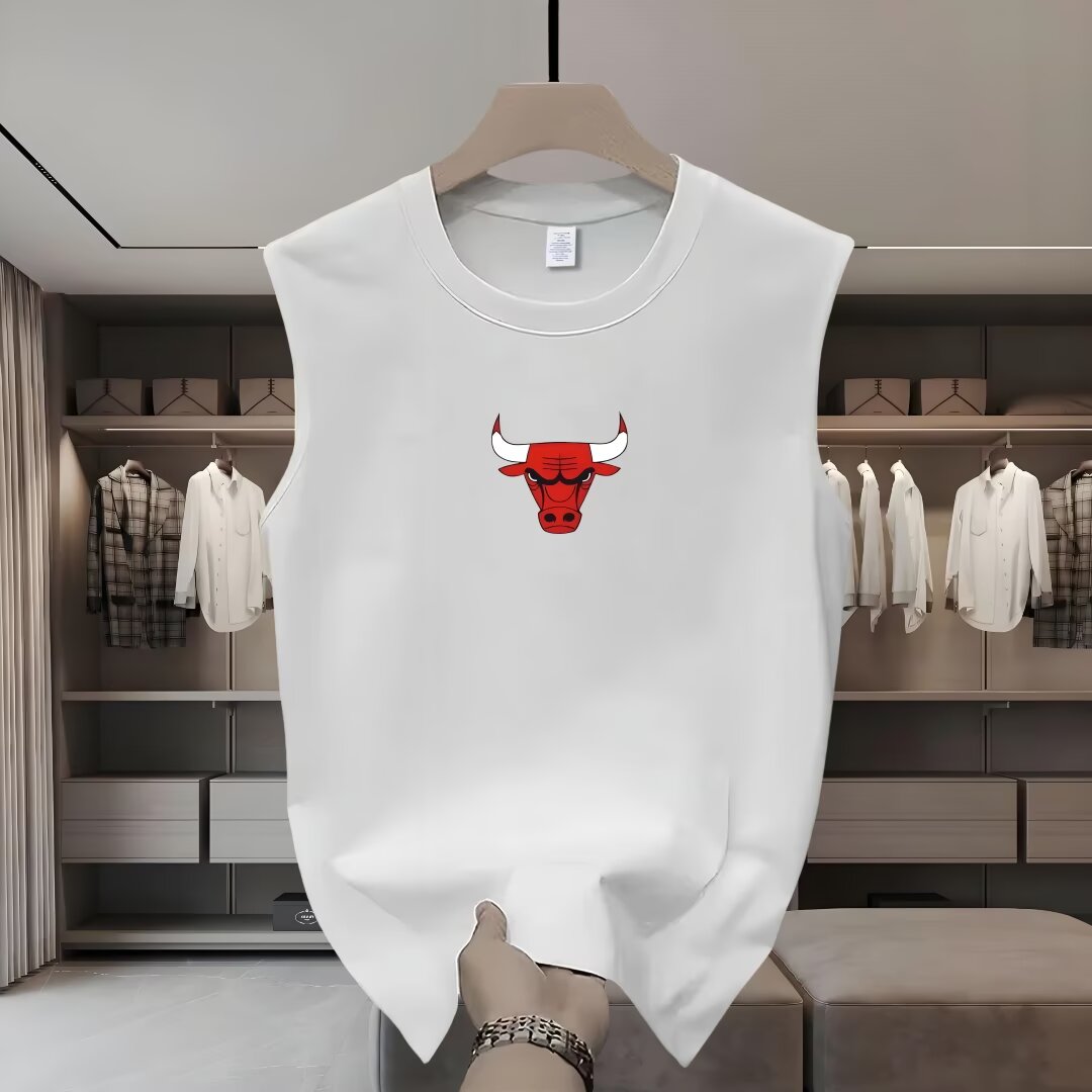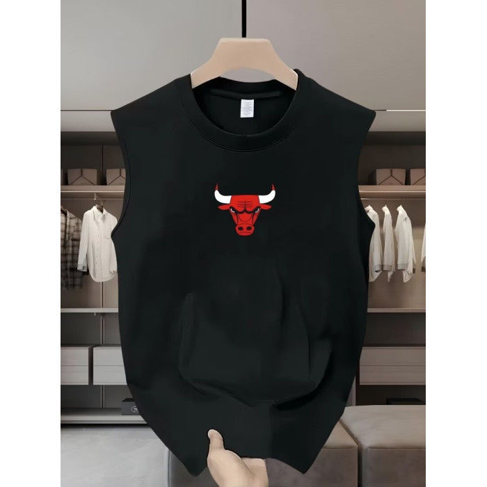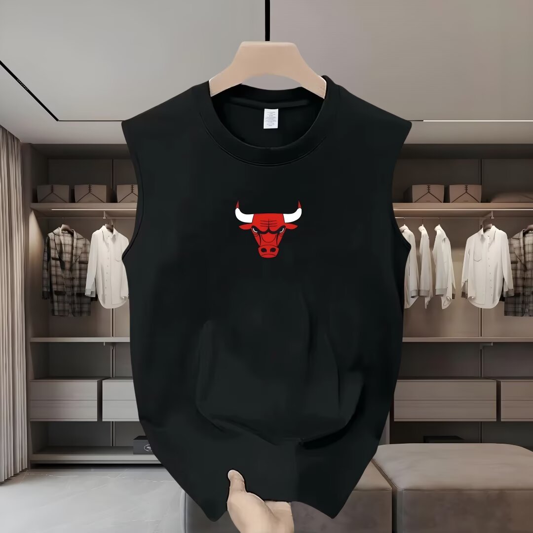 美式重磅純棉體育籃球運動公牛頭背心男無袖坎肩透氣健身寬松汗衫