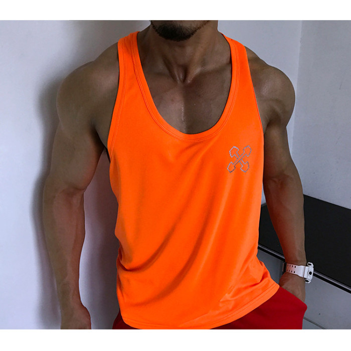 超襯膚色!騷氣速乾背心螢光細肩帶挖背無袖運動健身肌肉男顯身材