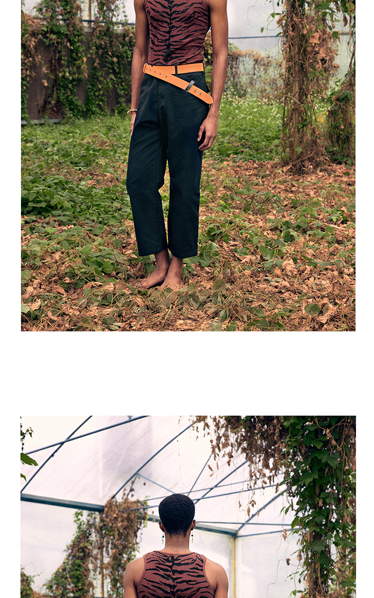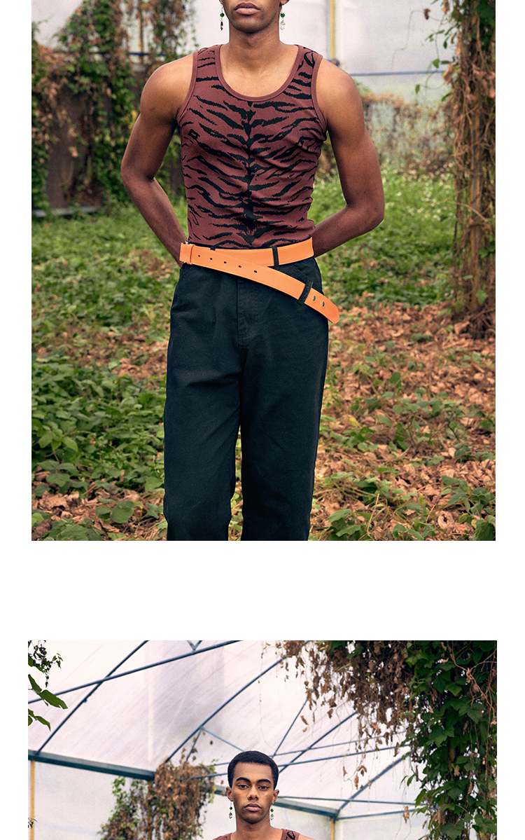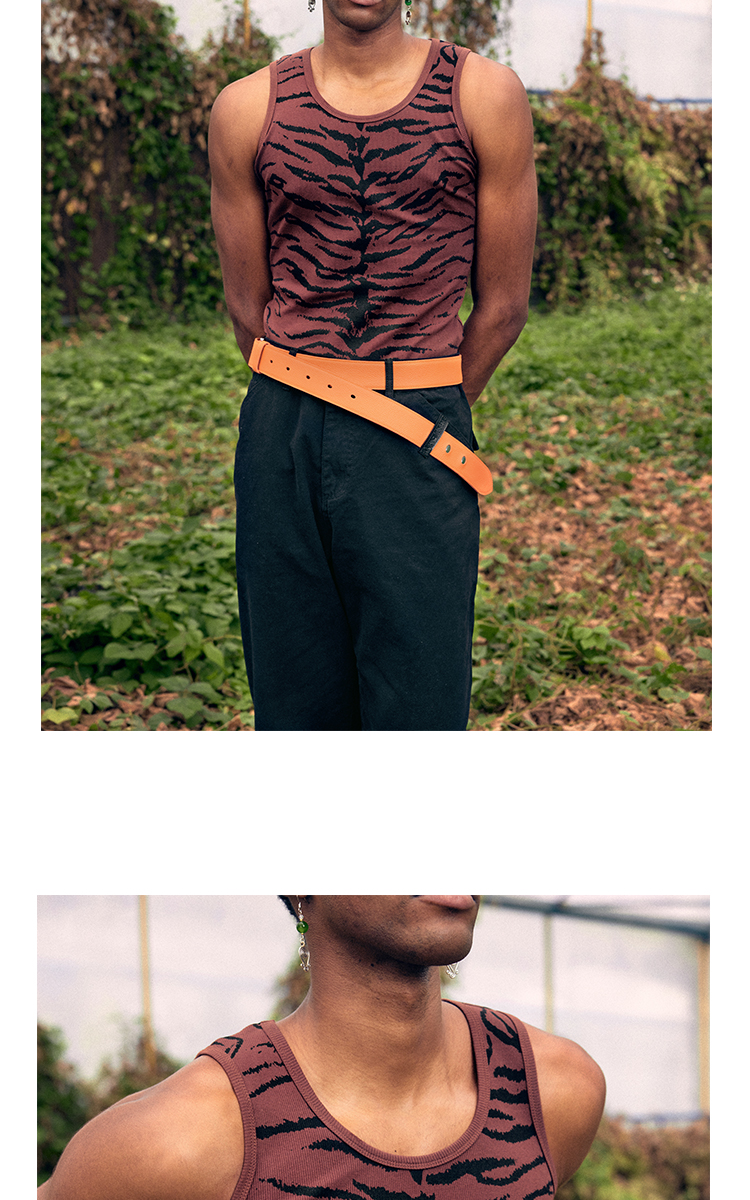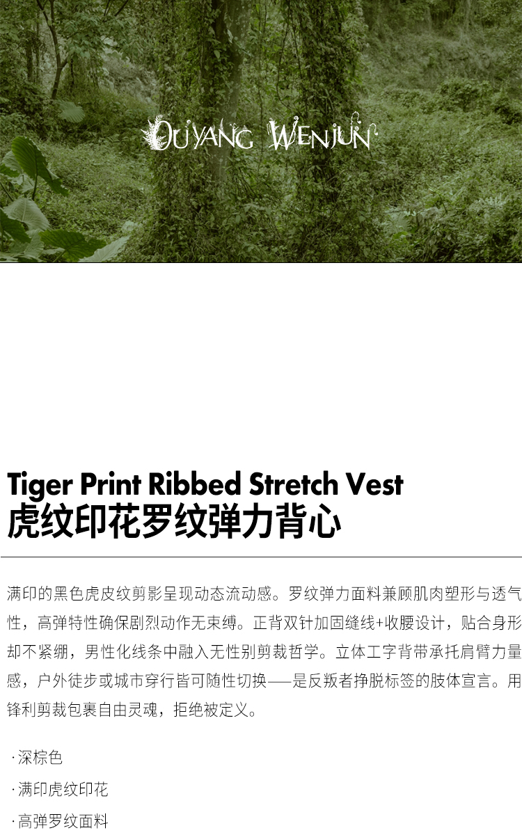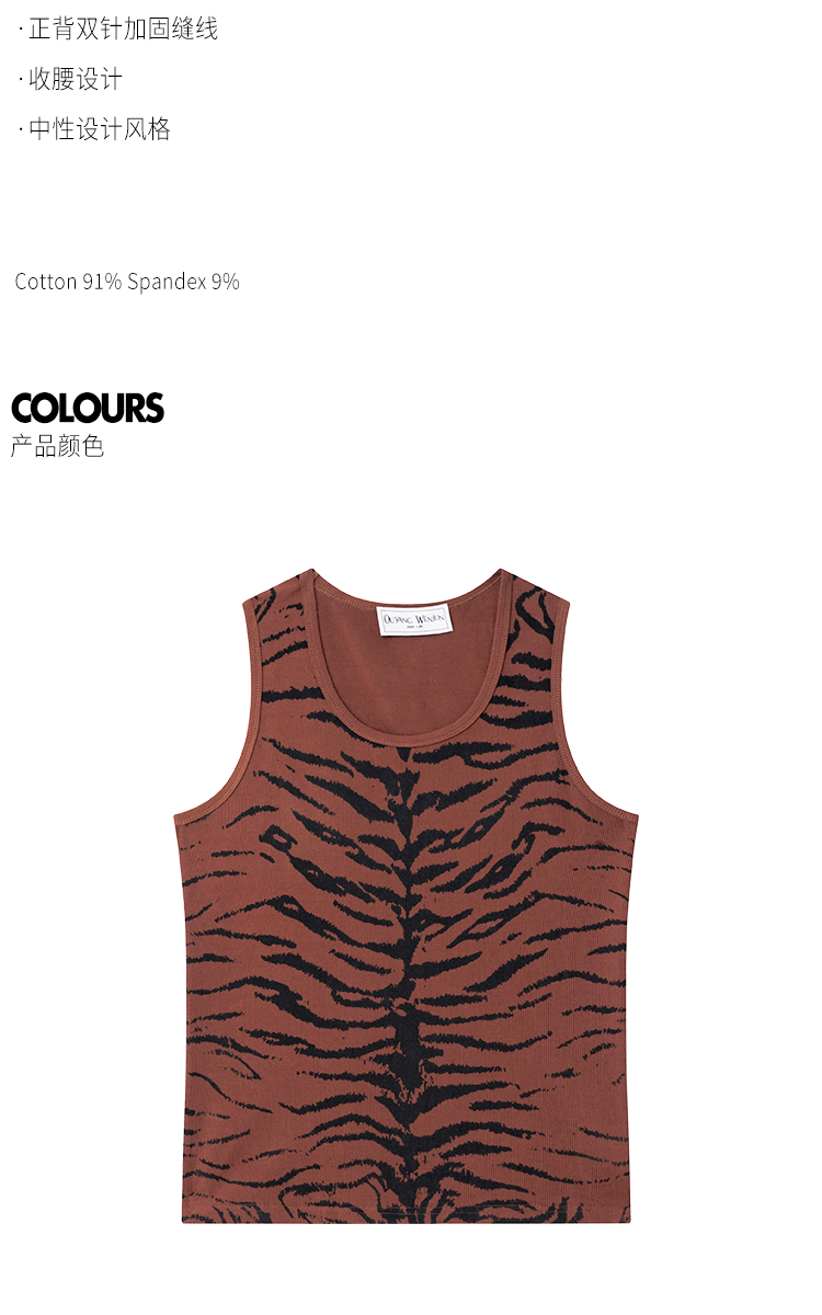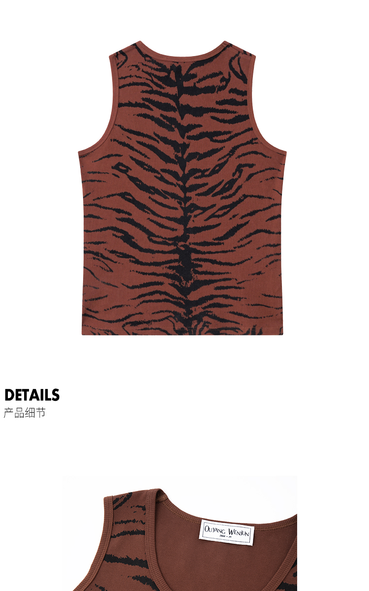 OUYANG WENJUN*虎紋印花羅紋彈力背心