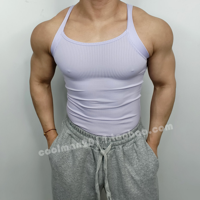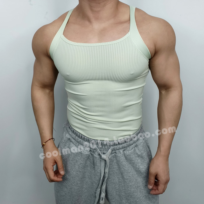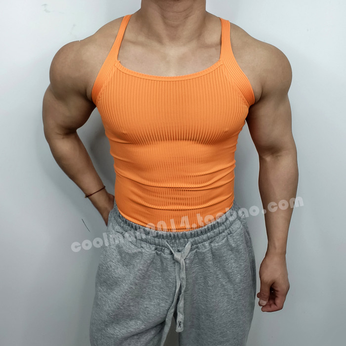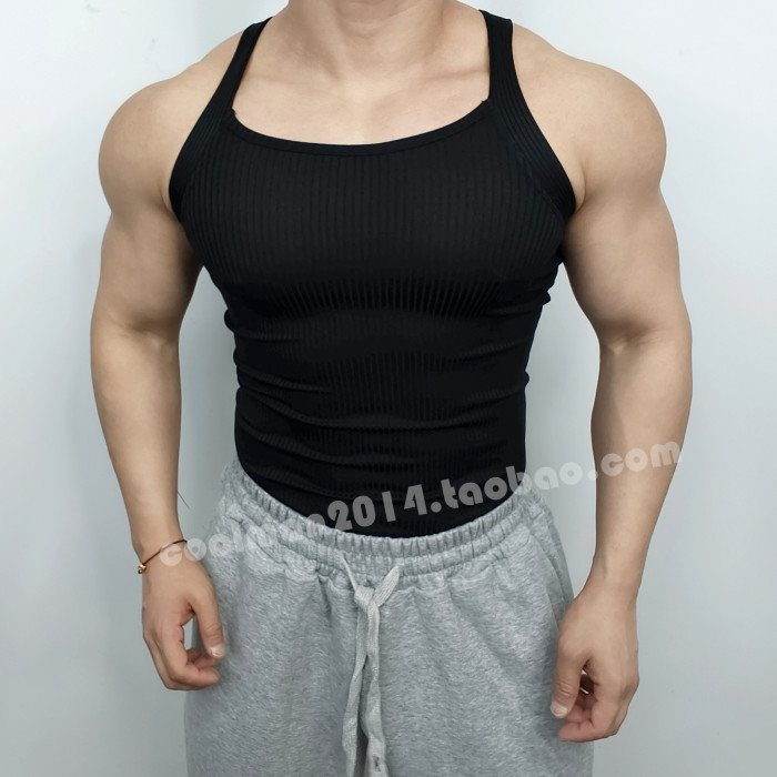 戶外跑步運動T恤男士健身螺紋背心純色休閒壓縮緊身無袖訓練上衣