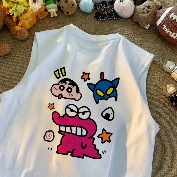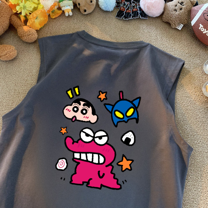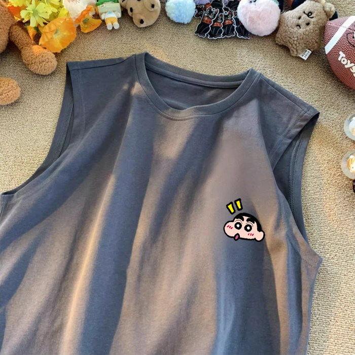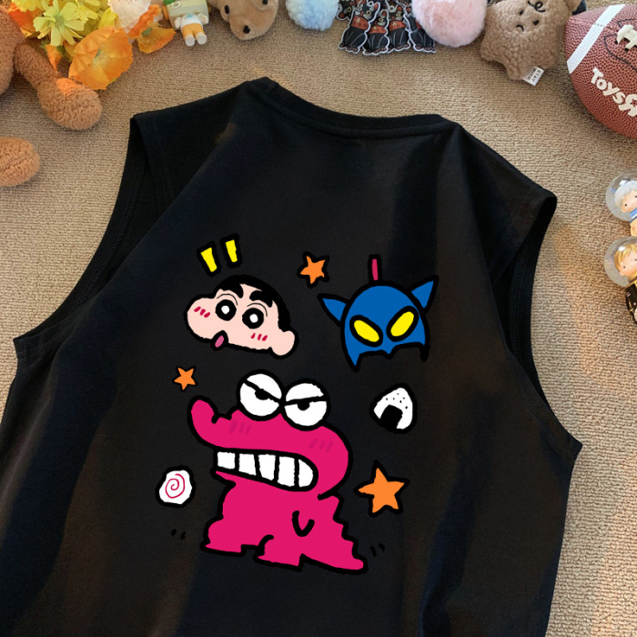 日系卡通動漫小新無袖t恤男女大碼休閒舒適純棉220g坎肩背心夏款
