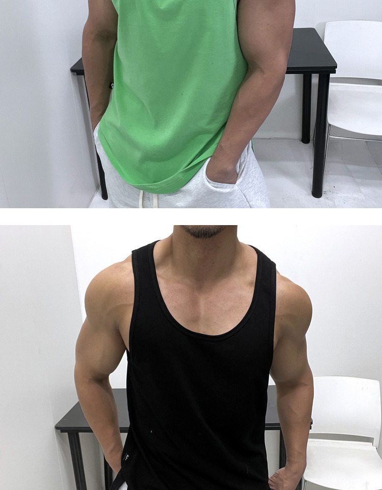 磨砂手感純棉!好面料微濶版寬松運動背心肌肉男體育生無袖T恤健身